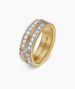 This collection was inspired by medieval chains, symbols and armor that captivated Evan Yurman on a tour of Venice. With rich patinas and the juxtaposition of polished and stippled textures, the hand-finished designs reinterpret ancient motifs. 18-karat yellow goldPavé diamonds, 2.30 total carat weightRing, 8mmThis item can be engraved. Please contact customer care for more information.