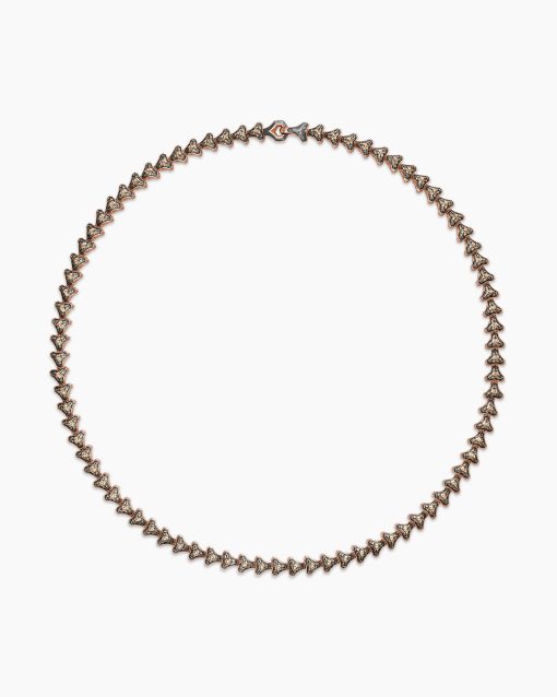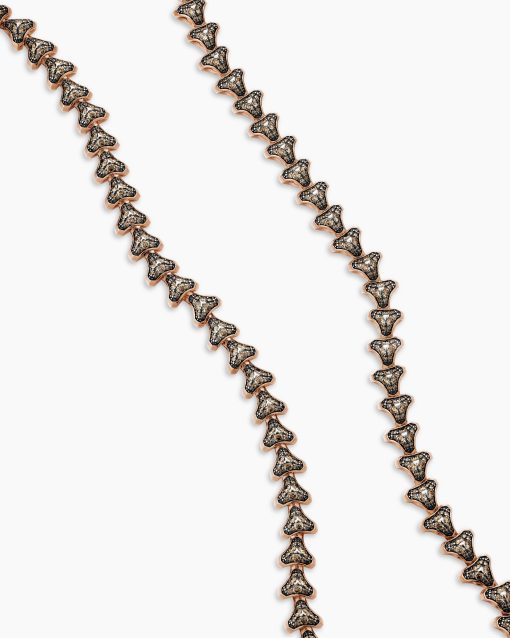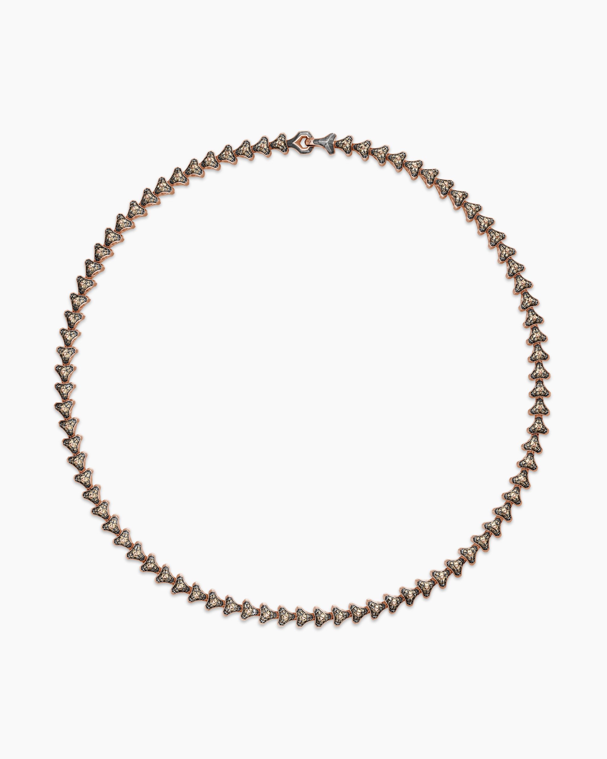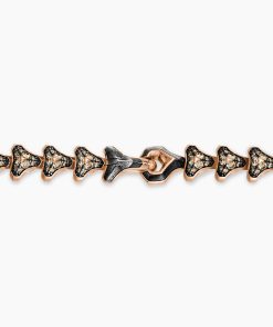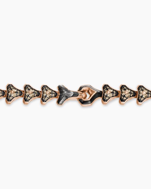This collection was inspired by medieval chains, symbols and armor that captivated Evan Yurman on a tour of Venice. With rich patinas and the juxtaposition of polished and stippled textures, the hand-finished designs reinterpret ancient motifs. 18-karat rose goldPavé cognac diamonds, 15.52 total carat weightChain, 9.5mmPush clasp