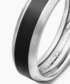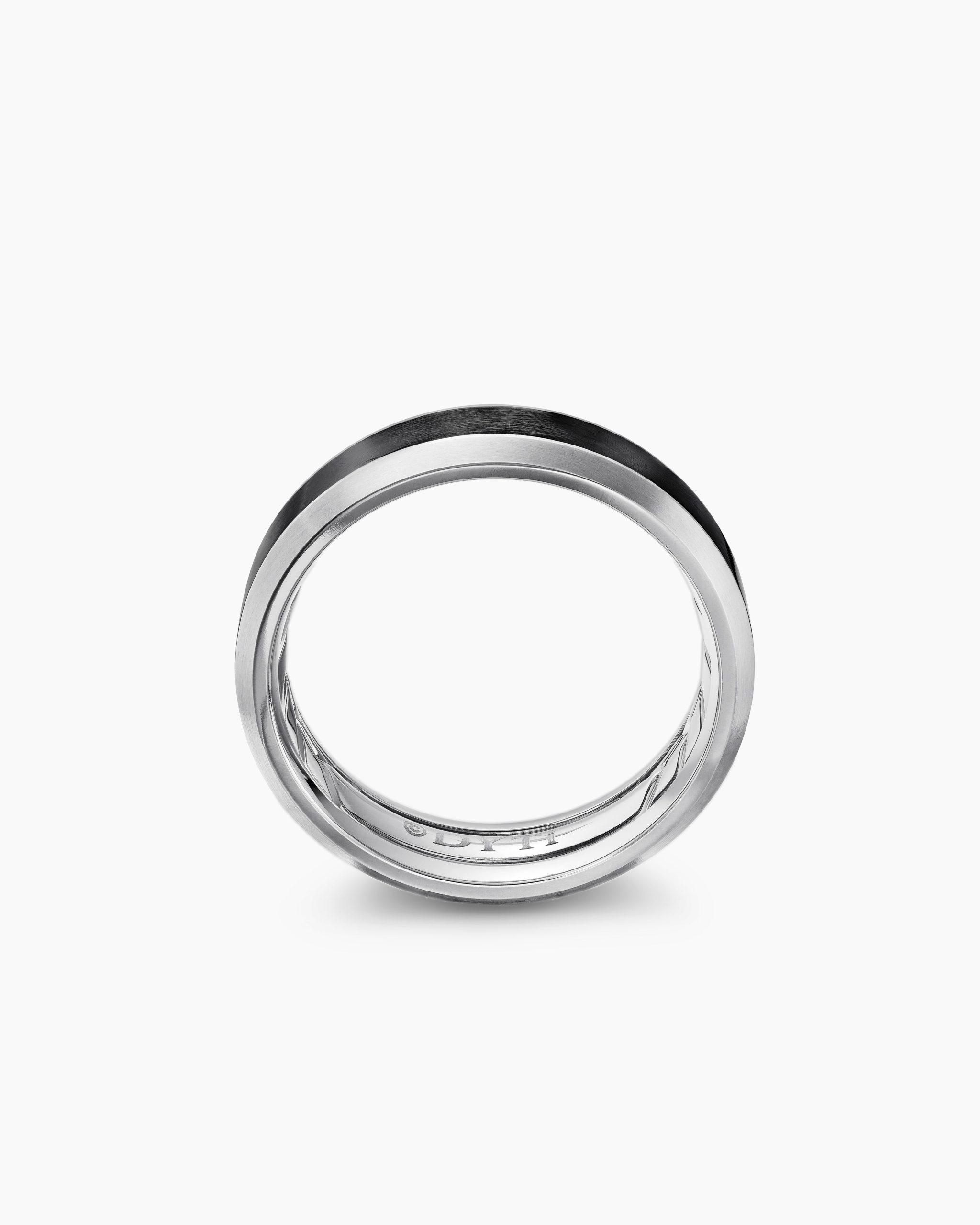 This hand-finished piece is inspired by beveled edges. Grey titanium with black titaniumRing, 6mmThis item can be engraved. Please contact customer care for more information.