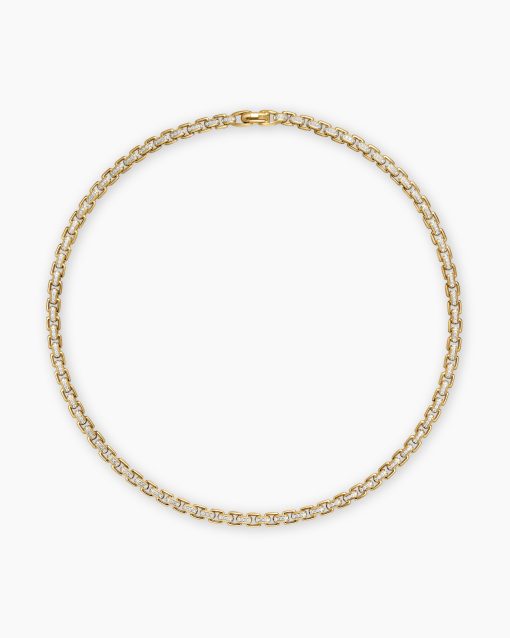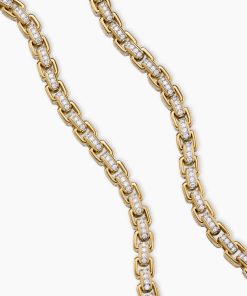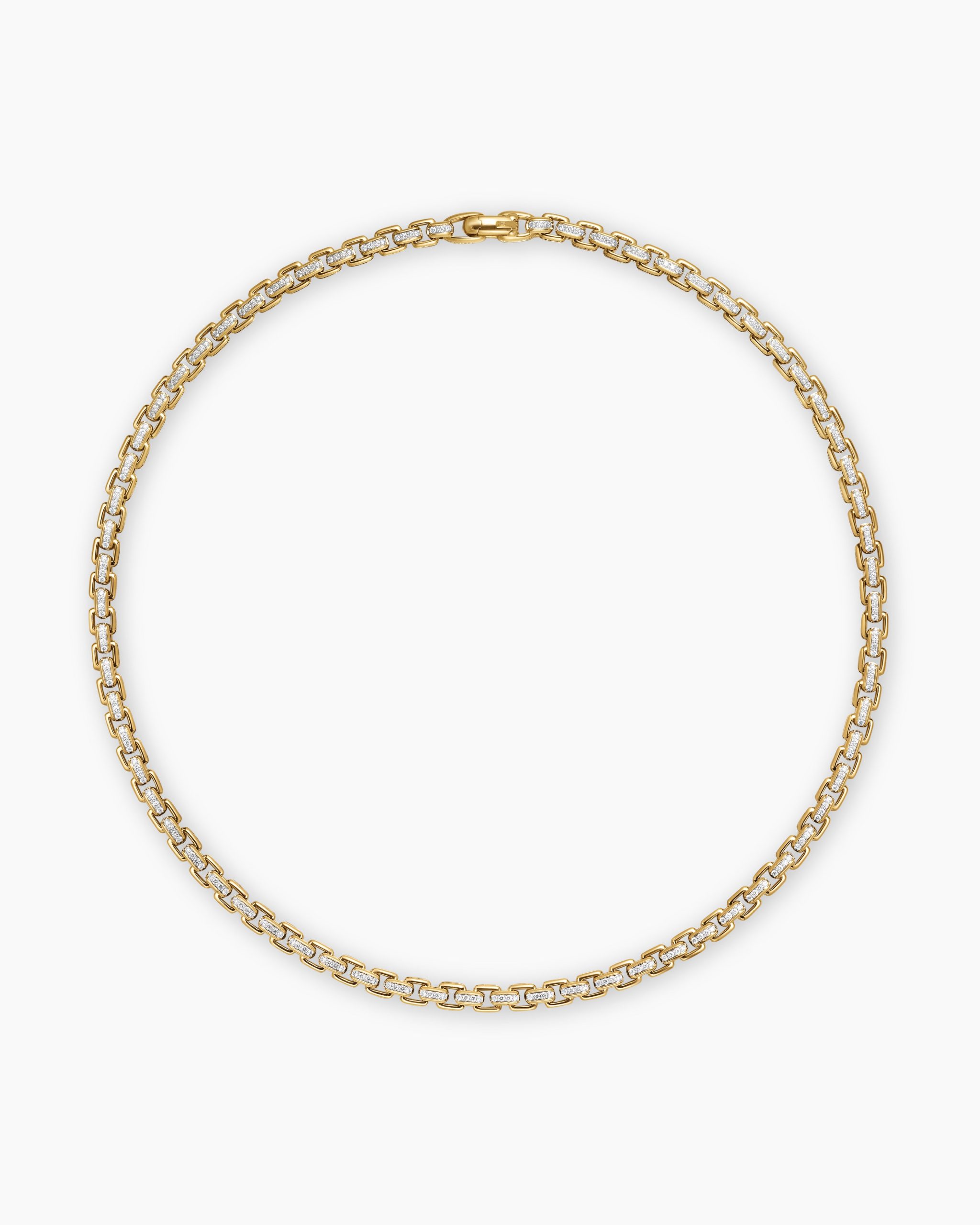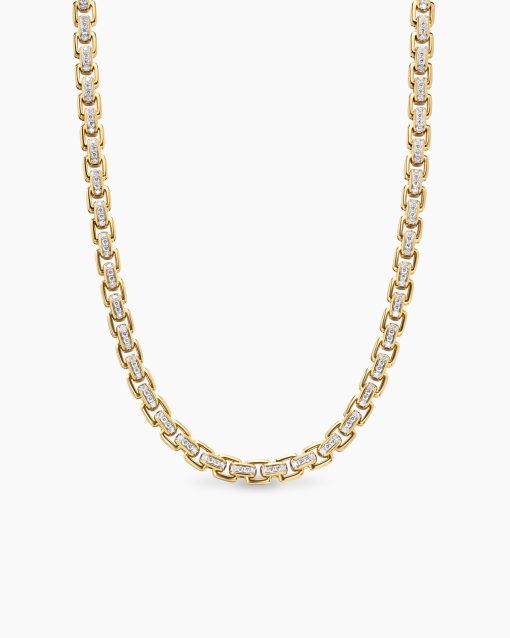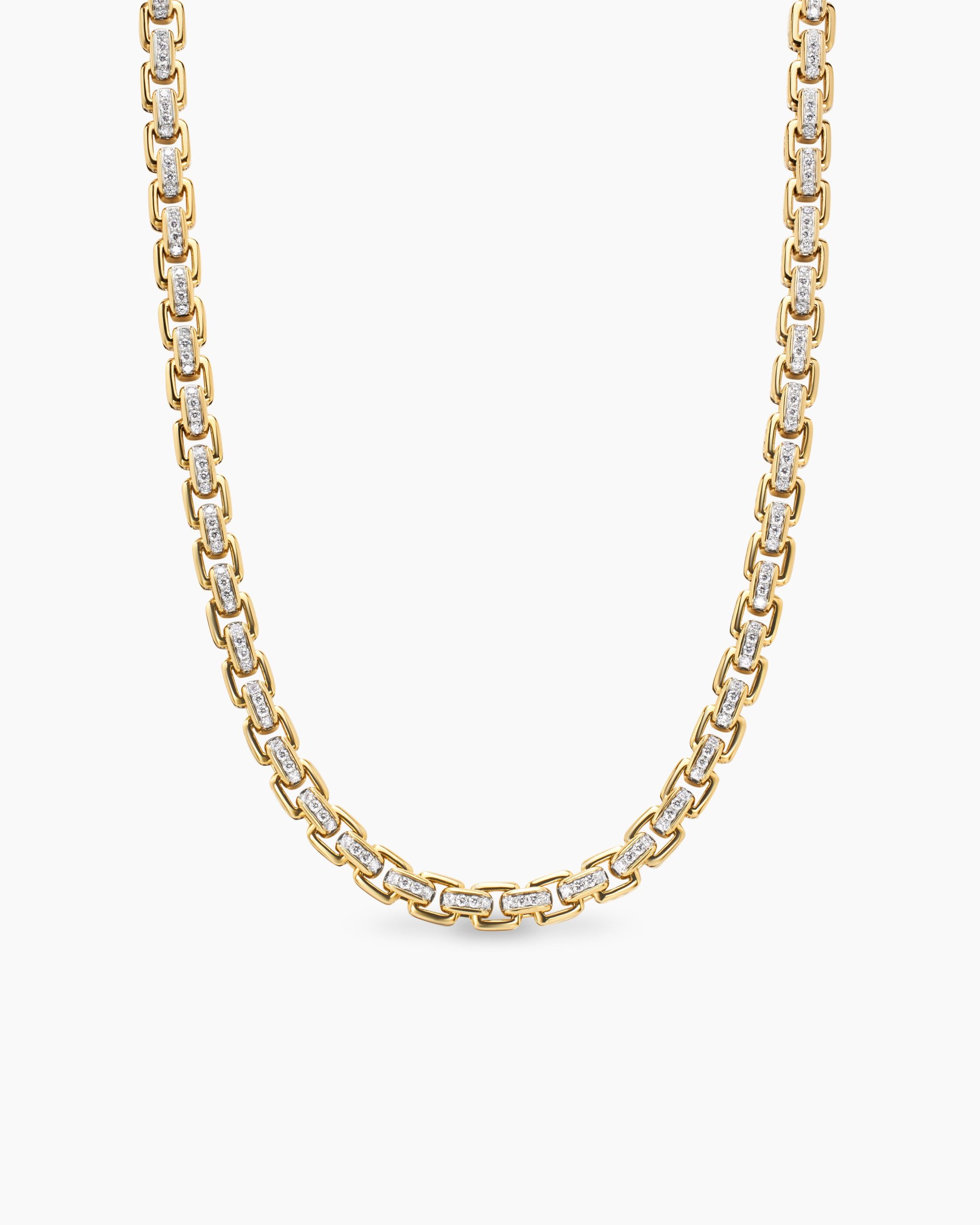 Inspired by classical and original motifs, David Yurman chain necklaces and bracelets showcase masterful craftsmanship, with sculptural links carved and assembled for seamless movement. Ideal for layering, these timeless chains are the foundation of a jewelry collection, whether worn alone or paired with a pendant.18-karat yellow goldPavé-set diamonds, total carat weight ranges from 15.59 to 24.63 (dependent on size)Necklace, 7.5mmPush clasp