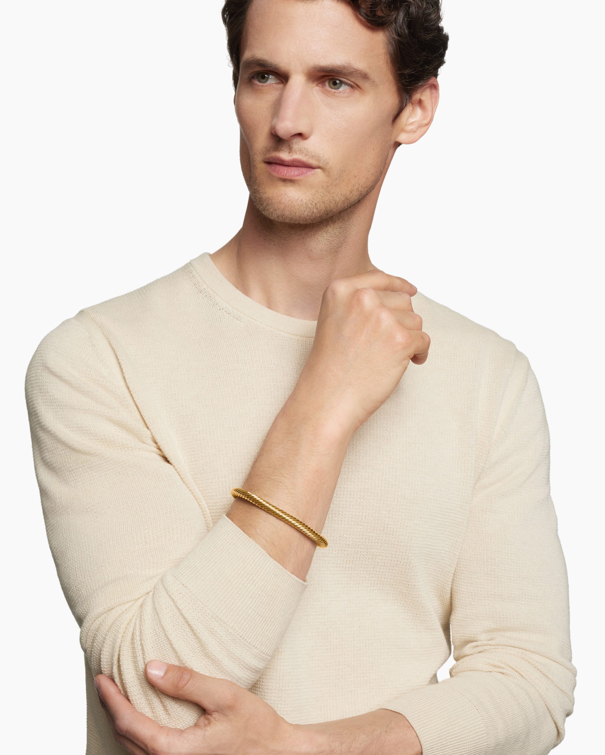 David Yurman’s artistic signature, Cable began as a bracelet that he hand-twisted from 50 feet of wire. For the past 30 years, he has evolved the twisted helix into a myriad of designs. 18-karat yellow goldBracelet, 7mmCablespira® is a patented DY construction that is highly flexible and exceptionally comfortable to wear.
