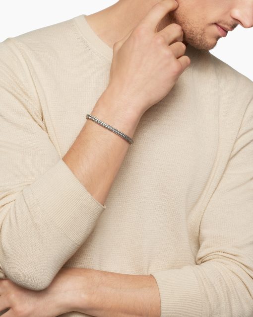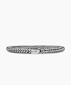 Marked by its double-helix pattern, Chevron is a mirror image of Cable, the house’s signature motif. The ancient V-shaped design offers a sense of modern sophistication, expertly crafted in refined materials, with deep cuts, precise angles, and a play of light and dark to evoke a feeling of forward momentum in the pursuit of excellence. Its elevated look fuses luxury and practicality for everyday wear, imbuing an essence of timelessness and versatility.Sterling SilverBracelet, 6mmPush clasp