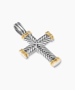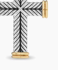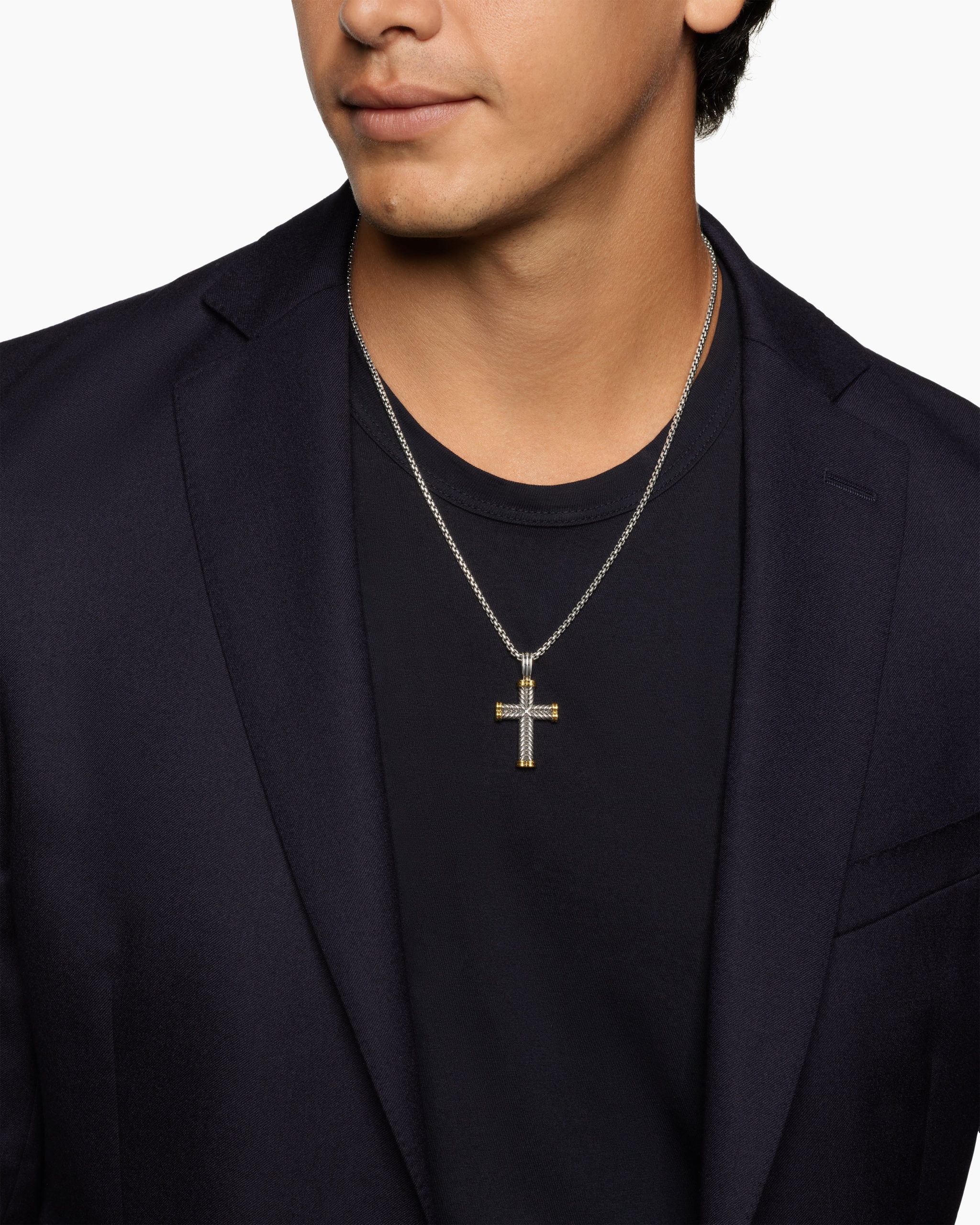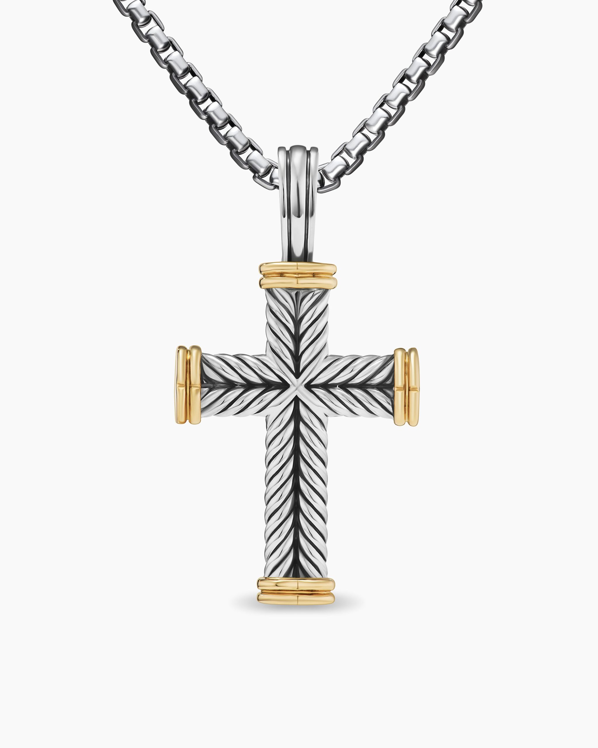 Marked by its double-helix pattern, Chevron is a mirror image of Cable, the house’s signature motif. The ancient V-shaped design offers a sense of modern sophistication, expertly crafted in refined materials, with deep cuts, precise angles, and a play of light and dark to evoke a feeling of forward momentum in the pursuit of excellence. Its elevated look fuses luxury and practicality for everyday wear, imbuing an essence of timelessness and versatility.Cross only; chain not included. To complete the look, add a box chain.Sterling silver with 18-karat yellow goldCross, 33 x 24mmTotal length, 44mmThis item can be engraved. Please contact customer care for more information.