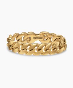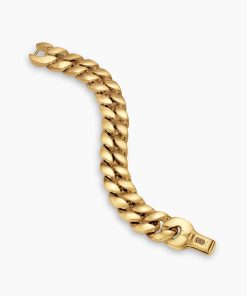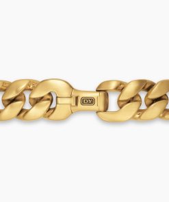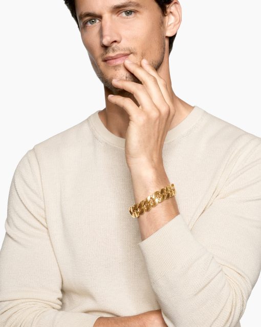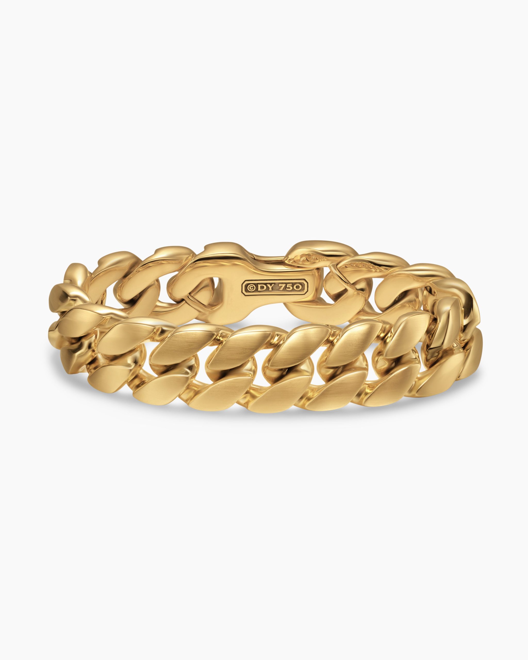 Inspired by David’s passion for horses, Curb Chain is the most elevated expression of our signature chain links. Its timeless elegance is rooted in the traditional equestrian bridle tack used to create control and stability during moments of speed. Forged precious metal is carved into Cable-like S-curves, each link crafted with impactful precision and hand-assembled with the next, culminating in a striking chain engineered for effortless movement.18-karat yellow gold Bracelet, 18mmPush clasp