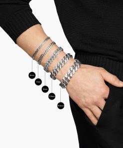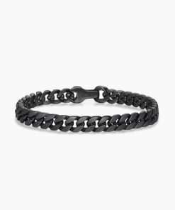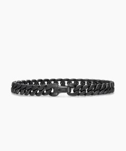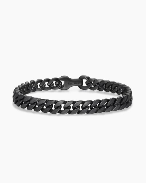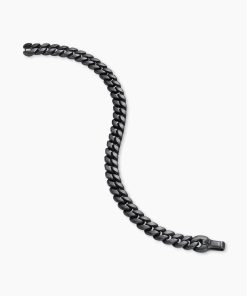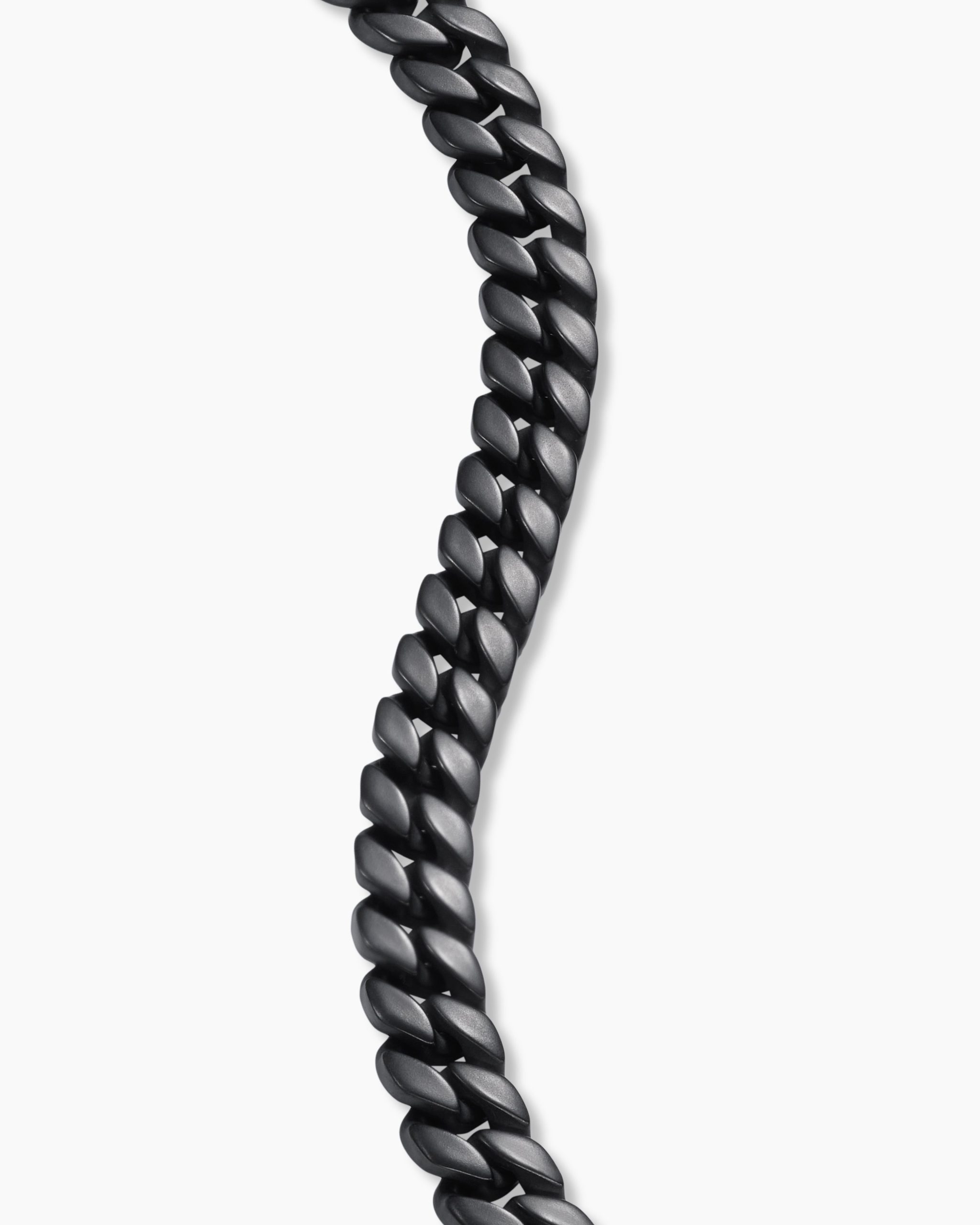Inspired by David’s passion for horses, Curb Chain is the most elevated expression of our signature chain links. Its timeless elegance is rooted in the traditional equestrian bridle tack used to create control and stability during moments of speed. Forged precious metal is carved into Cable-like S-curves, each link crafted with impactful precision and hand-assembled with the next, culminating in a striking chain engineered for effortless movement.Black titaniumBracelet, 8mmPush claspThis item can be resized. Please contact customer care for more information.