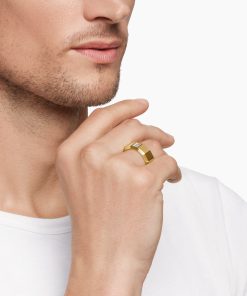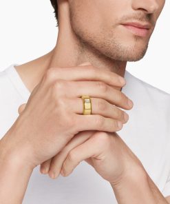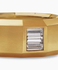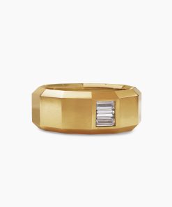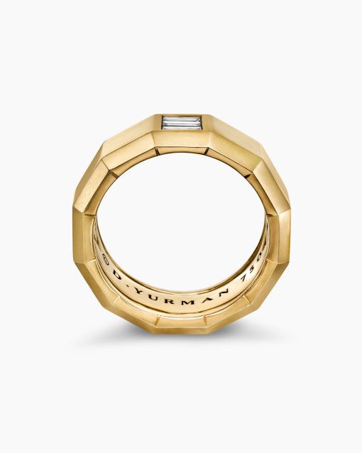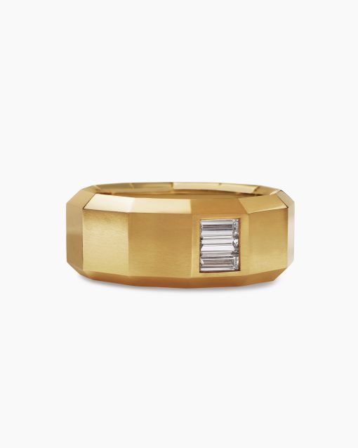 This distinctive men’s design is inspired by modern architecture. 18-karat yellow goldDiamond, 0.45 total carat weightRing, 10mm