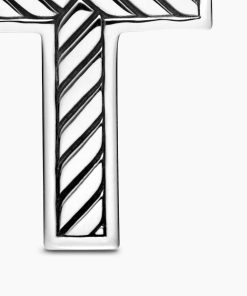 Inspired by clean lines and smooth metal surfaces, these minimalist designs are sculpted with engineered precision. Every pavé diamond or colored gemstone is carefully matched for color and hand set—a tribute to DY artistry. Sterling silverPavé black diamonds, 1.71 total carat weightCross, 28 x 15.8mmPlease note: cross only; chain sold separatelyShown with: Box Chain