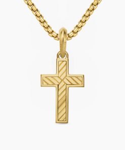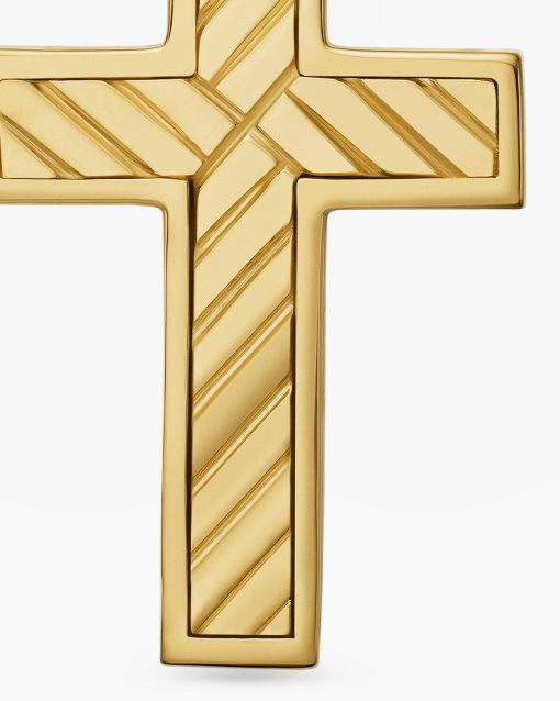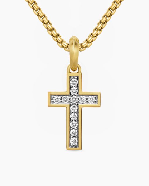 Inspired by clean lines and smooth metal surfaces, these minimalist designs are sculpted with engineered precision. Every pavé diamond or colored gemstone is carefully matched for color and hand set—a tribute to DY artistry. 18-karat yellow goldPavé diamonds, 0.77 total carat weightCross, 23 x 15.7mmPlease note: cross only; chain sold separatelyShown with: Box Chain