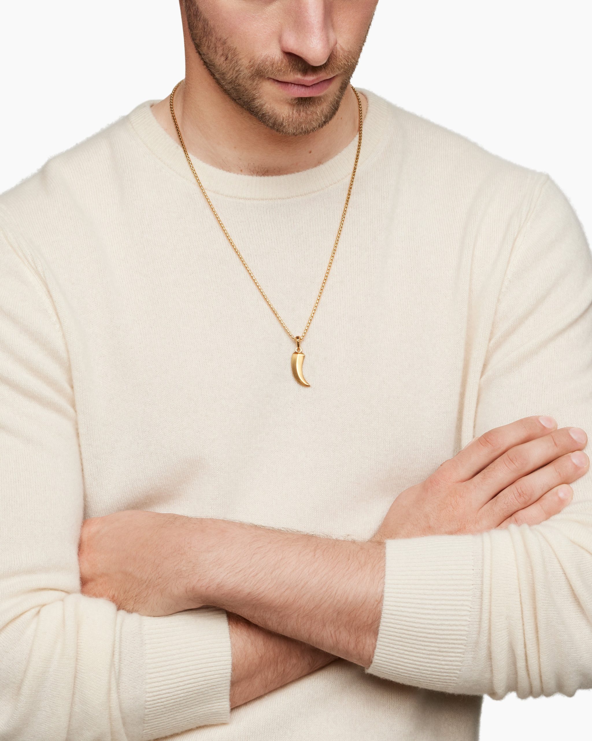 Once linked to spirituality and magic, today’s amulets are expressions of personal style. This collection reflects the modern man’s distinct identities with religious symbols, ancient charms and utilitarian motifs crafted from precious metals and gemstones. 18-karat yellow gold Amulet, 37 x 14.6mmPlease note: amulet only; chain sold separatelyShown with: Box Chain