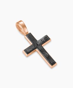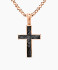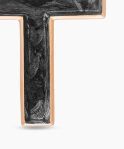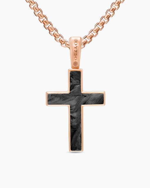 Inspired by clean lines and smooth metal surfaces, these minimalist designs are sculpted with engineered precision.Forged carbon is a lightweight yet strong composite originally used in aeronautics and sports cars. For jewelry, David Yurman pioneered a technique which fuses the modern material and precious metal into innovative, graphic designs.Inspired by clean lines and smooth metal surfaces, these minimalist designs are sculpted with engineered precision.Cross only; chain not included. To complete the look, add a box chain.18-karat rose goldForged carbonCross, 24 x 17mmTotal length, 32.8mm