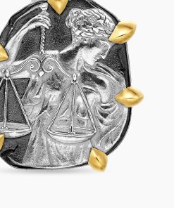 LIBRASeptember 23–October 23 Symbol: ScalesSeeks balance and harmony Sterling silver with 18-karat yellow goldAmulet, 33 x 20mmPlease note: amulet only; chain sold separately.Shown with: Box Chain