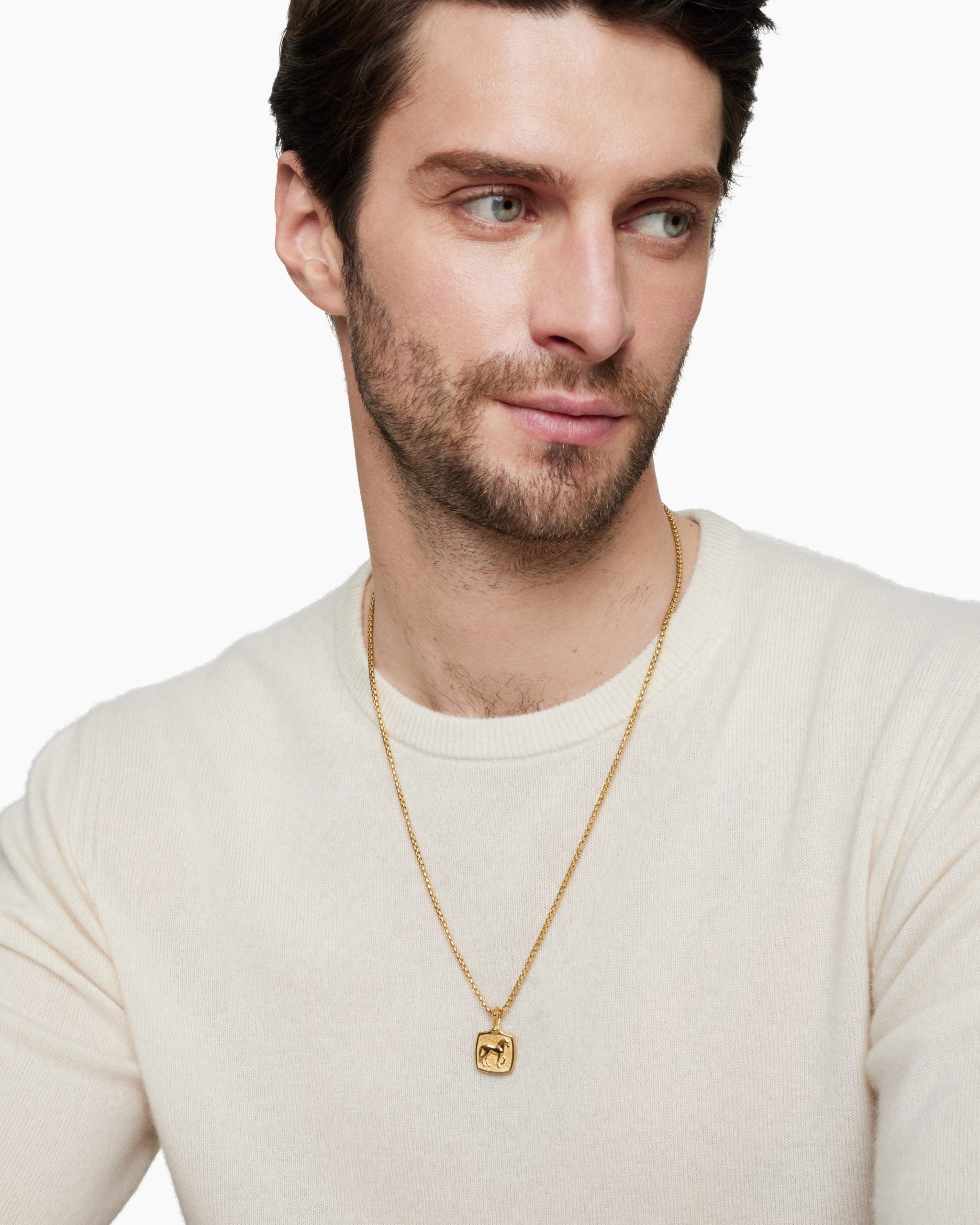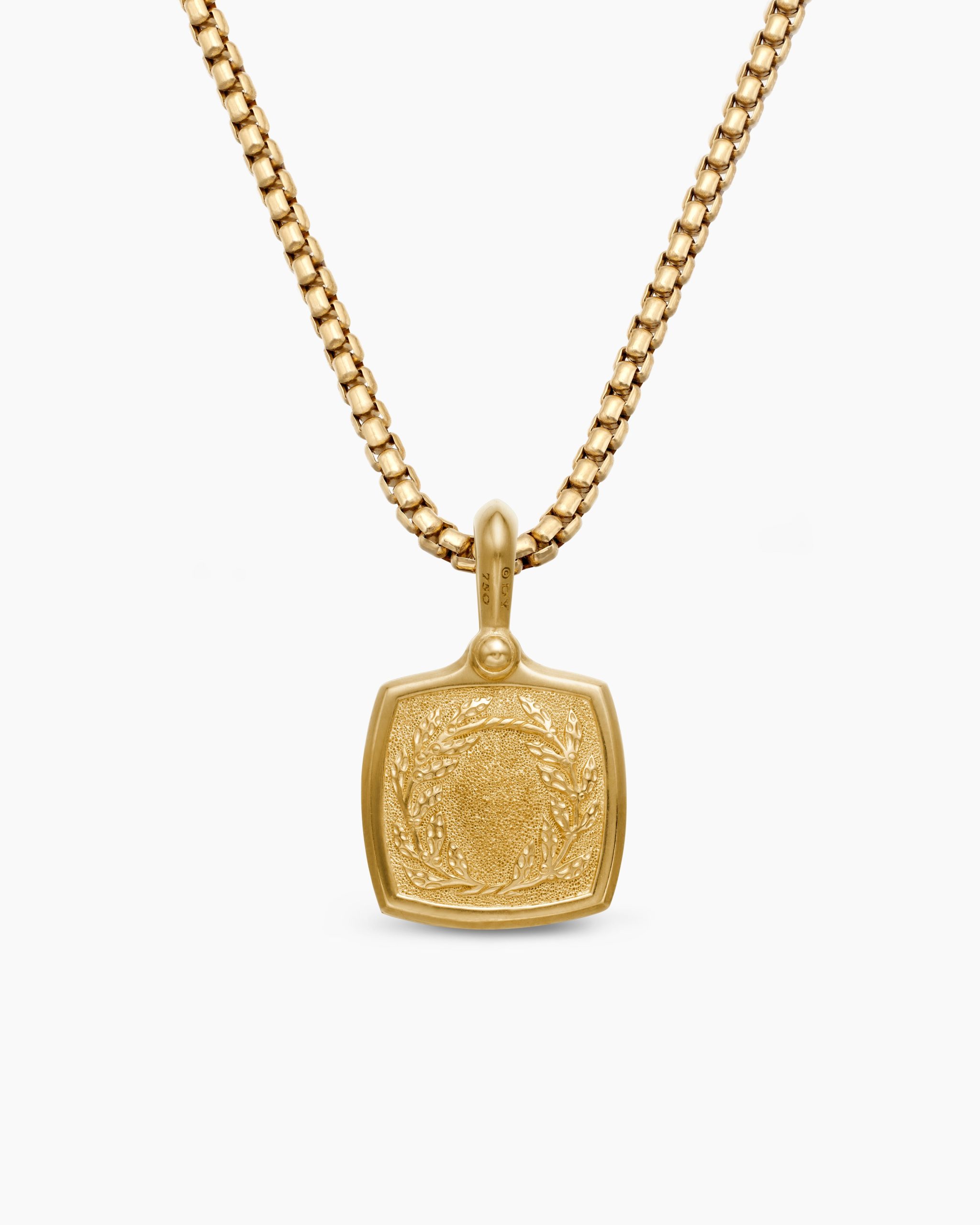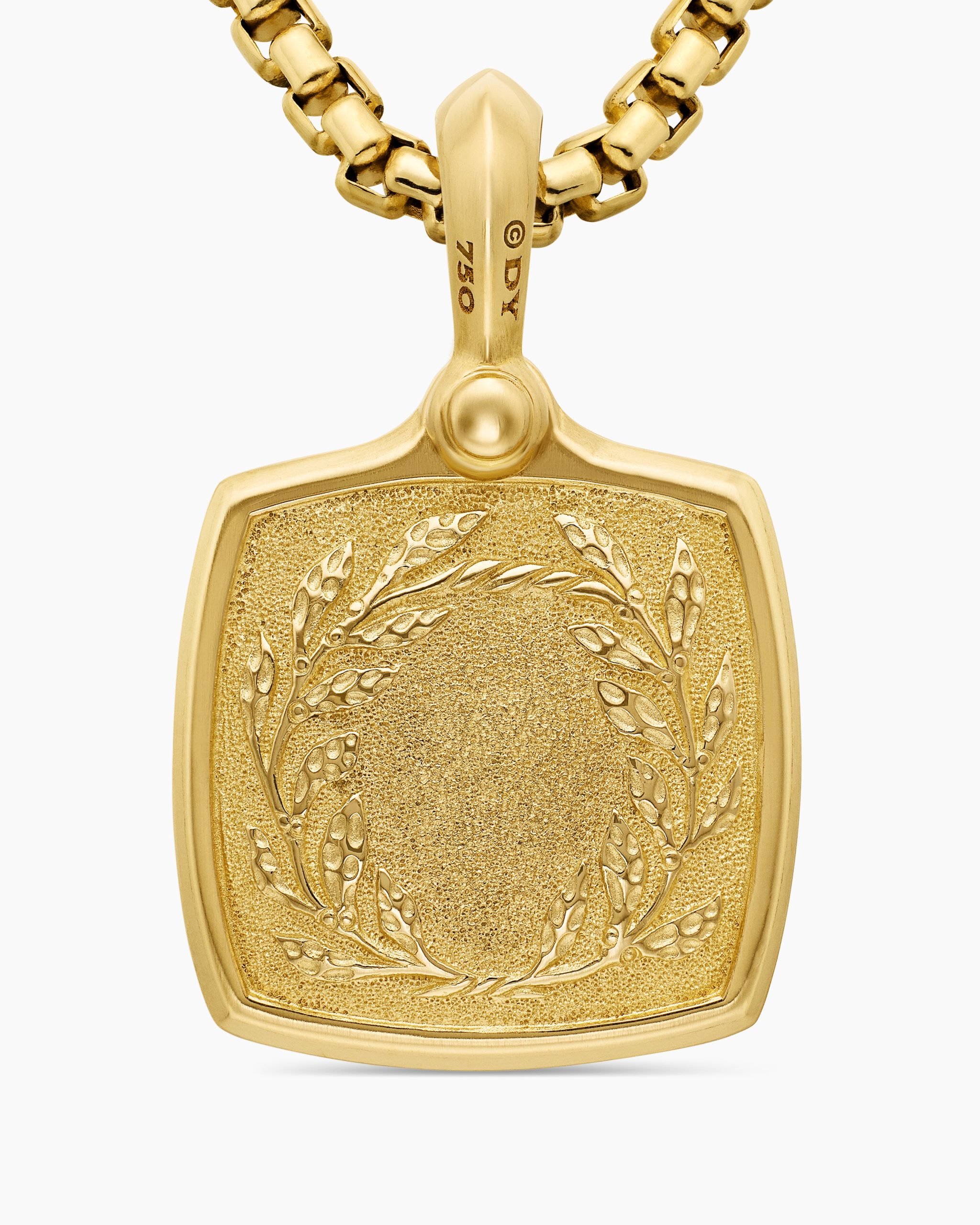The past and present converge in Petrvs®, which is inspired by ancient coins and stone carvings. Many designs reflect classical intaglios with intricate motifs that express gentlemanly qualities. 18-karat yellow goldAmulet, 19 x 16.8mmPlease note: amulet only; chain sold separatelyShown with: Box Chain