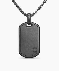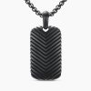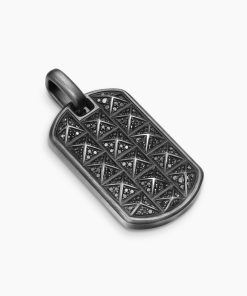 This design references the pyramid—an enduring form that connects us to our ancient roots in art, architecture and design.Tag only; chain not included. To complete the look, add a box chain.Black titaniumPavé-set black diamonds, 0.98 total carat weightTag, 35 x 20.6mmTotal length, 43mm