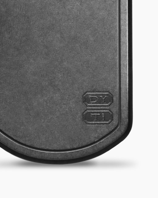 This design references the pyramid—an enduring form that connects us to our ancient roots in art, architecture and design.Tag only; chain not included. To complete the look, add a box chain.Black titaniumPavé-set black diamonds, 0.98 total carat weightTag, 35 x 20.6mmTotal length, 43mm