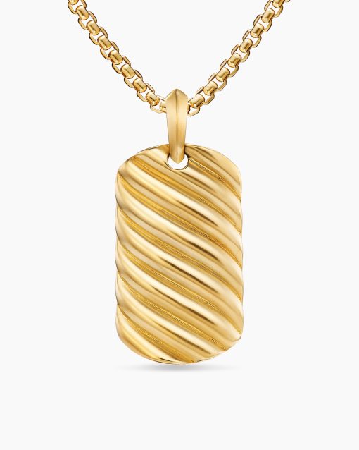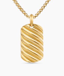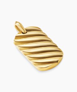 In Sculpted Cable, David Yurman transforms his signature design motif into a carved form. The effect is an entrancing wavelike pattern that retains the dimensional look of Cable’s original helix. 18-karat yellow goldTag, 35 x 20.3mmTotal length, 46.9mmTag only; chain not included.This item can be engraved. Please contact customer care for more information.