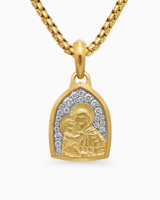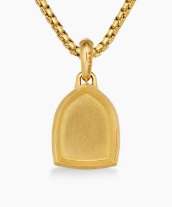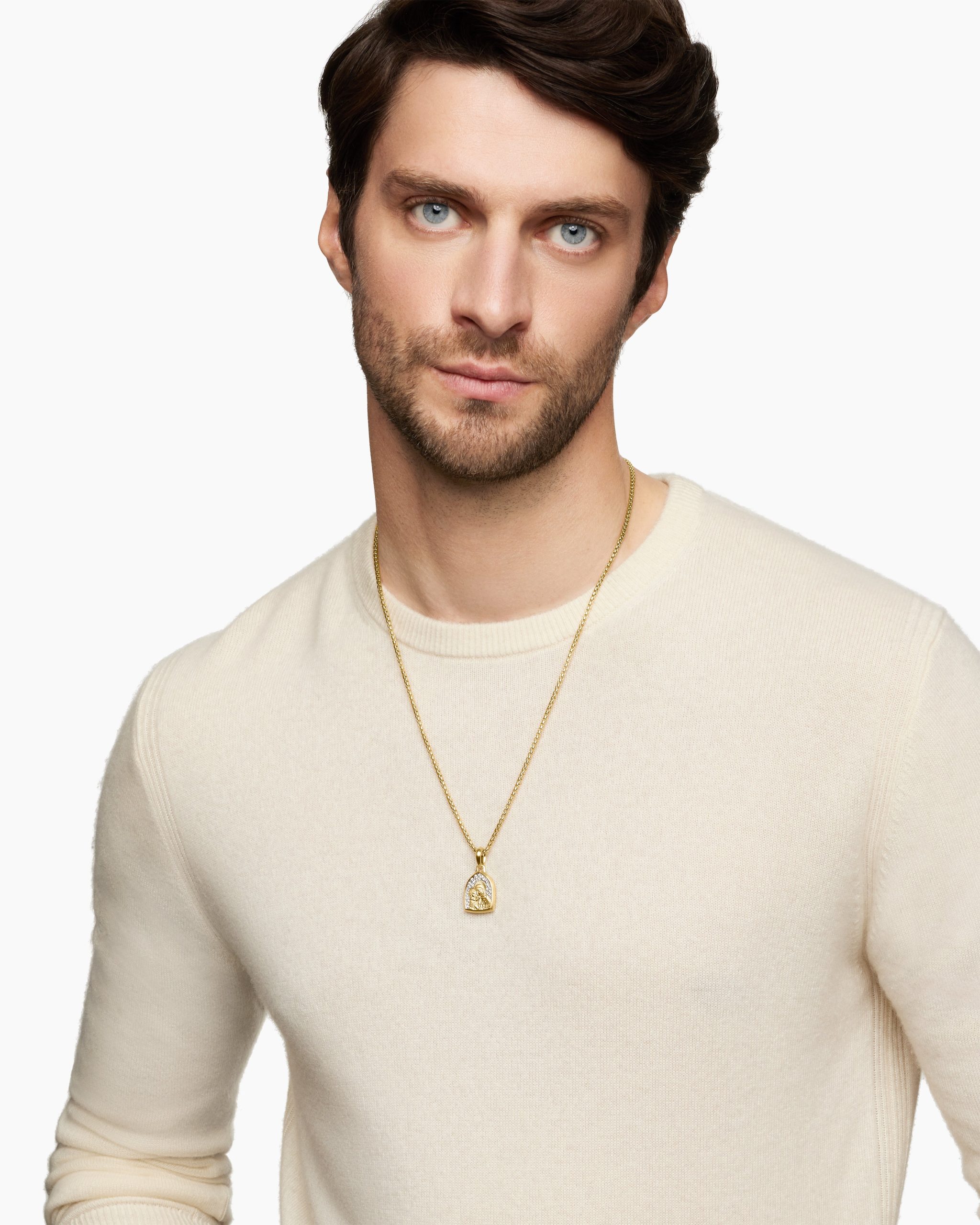Once linked to spirituality and magic, today’s amulets are expressions of personal style. This collection reflects the modern man’s distinct identities with religious symbols, ancient charms and utilitarian motifs crafted from precious metals and gemstones. 18-karat yellow goldPavé diamonds, 0.43 total carat weightAmulet, 21.8 x 17mmPlease note: amulet only; chain sold separatelyShown with: Box Chain