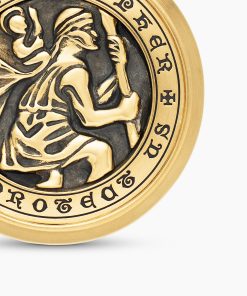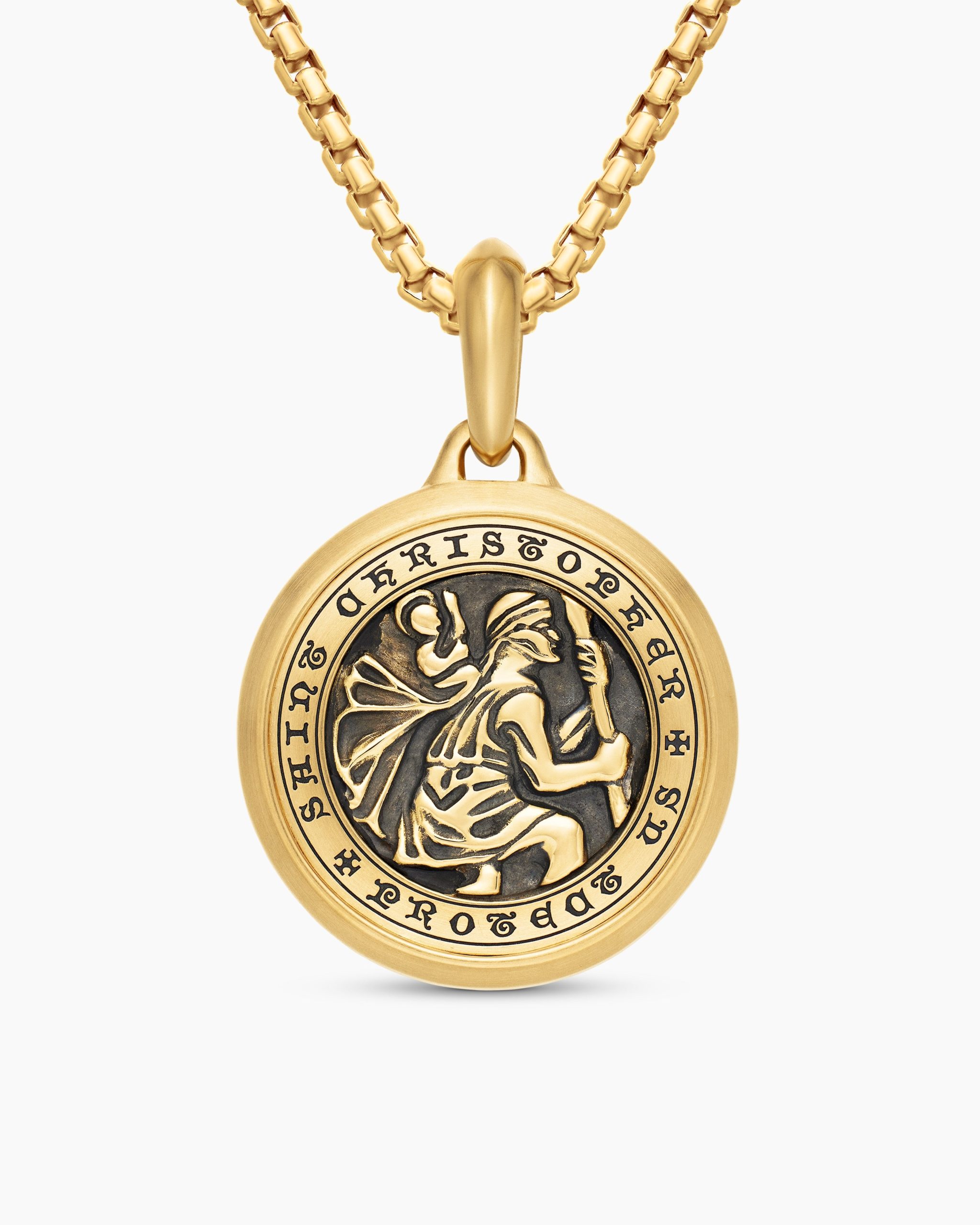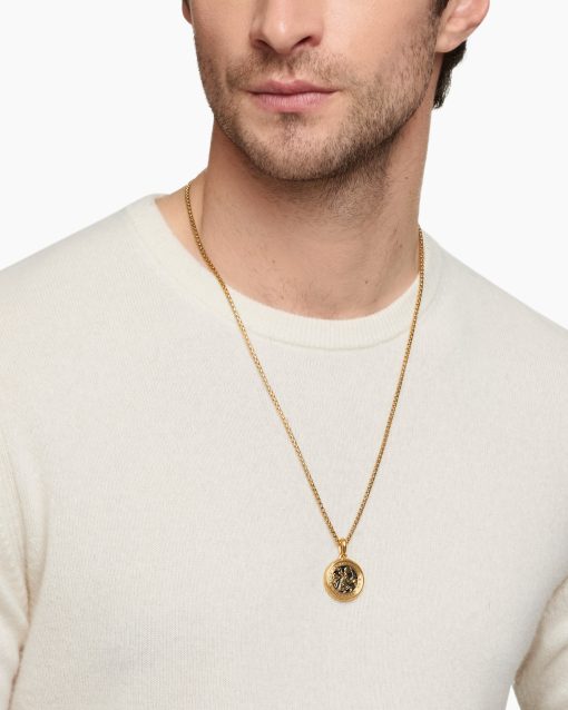 Once linked to spirituality and magic, today’s amulets are expressions of personal style. This collection reflects the modern man’s distinct identities with religious symbols, ancient charms and utilitarian motifs crafted from precious metals and gemstones. 18-karat yellow goldAmulet, 34.5mmPlease note: amulet only; chain sold separatelyShown with: Box Chain