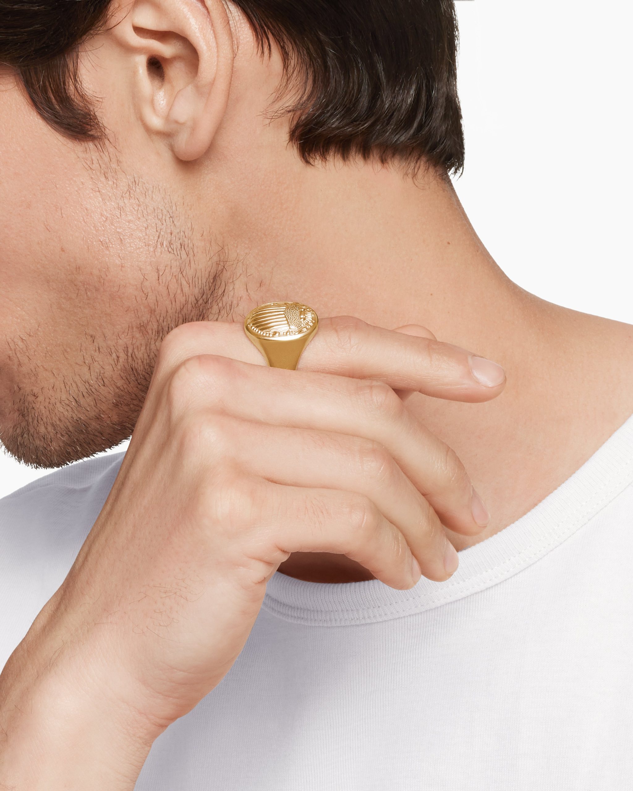 The past and present converge in Petrvs®, which is inspired by ancient coins and stone carvings. Many designs reflect classical intaglios with intricate motifs that express gentlemanly qualities. 18-karat yellow goldRing, 21.5mmThis item can be engraved. Please contact customer care for more information.