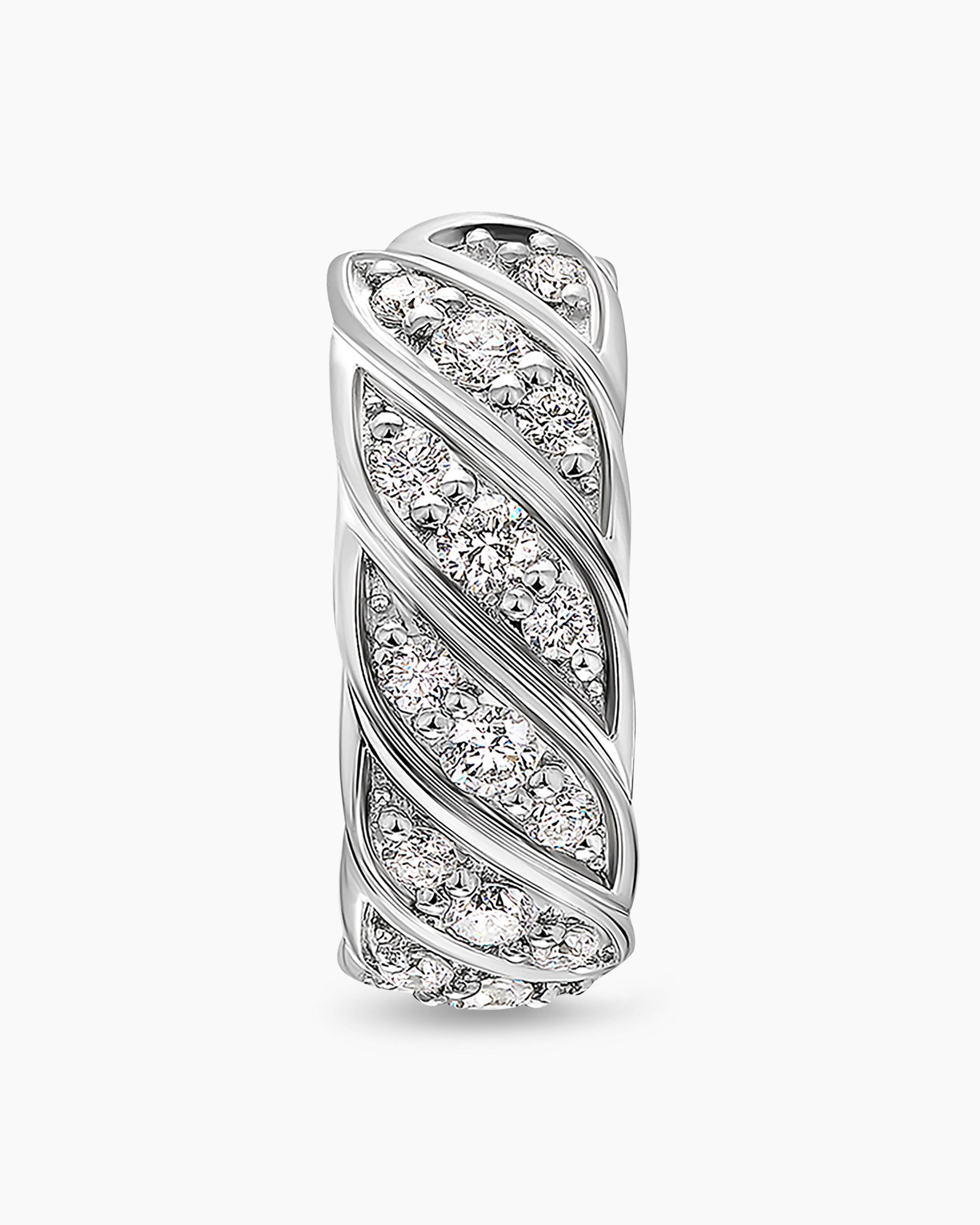 Inspired by his love of architecture and bas-relief sculpture, Evan Yurman designed this modern form by deconstructing Cable—the house’s signature motif—to its essence. Each timeless design is a wearable work of art. Precious metals are meticulously carved with mesmerizing wavelike patterns that dramatically catch the light. Elegant curves highlight the sensuality of the body.18-karat white goldPavé-set diamonds, 0.13 total carat weightEarring, 12.8 x 4.4mmPlease note: sold as a single hoop