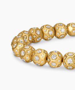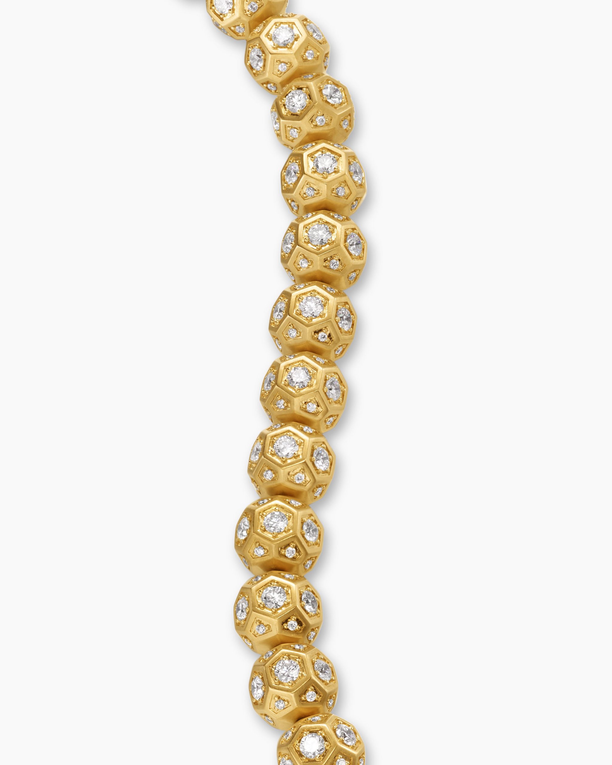 Rooted in spiritual significance, these modern beaded jewelry designs are symbolic of your inner spirit and authenticity. They are meant to be collected, layered, and worn continuously as you move through life’s journey. Expertly crafted, they feature a variety of smoothly polished, semi-precious, and rare gemstones, such as quartz, black onyx and tiger’s eye.18-karat yellow goldPavé-set diamonds, total carat weight ranges from 9.37 to 10.72 (dependent on size)Bracelet, 8mmPush clasp
