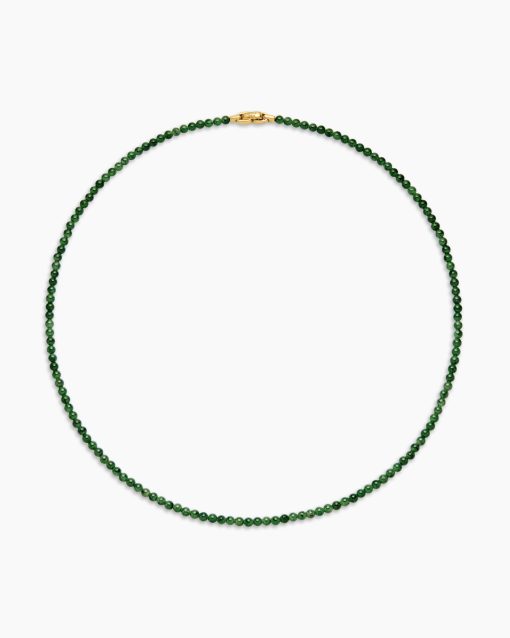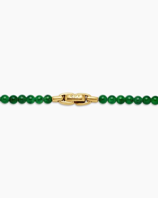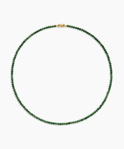 Rooted in spiritual significance, these modern beaded jewelry designs are symbolic of your inner spirit and authenticity. They are meant to be collected, layered, and worn continuously as you move through life’s journey. Expertly crafted, they feature a variety of smoothly polished, semi-precious, and rare gemstones, such as quartz, black onyx and tiger’s eye.18-karat yellow goldNephrite jadeNecklace, 4mmPush clasp