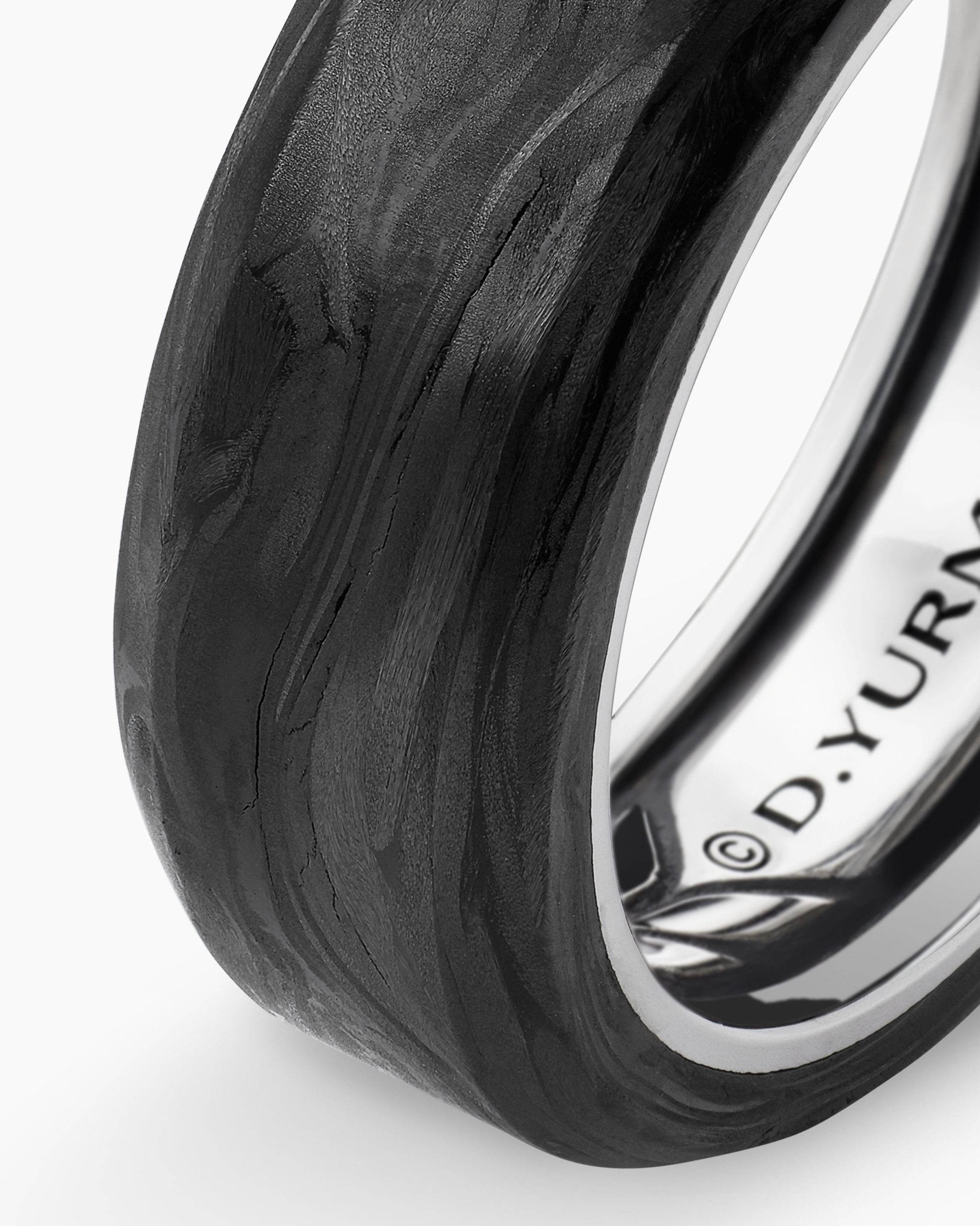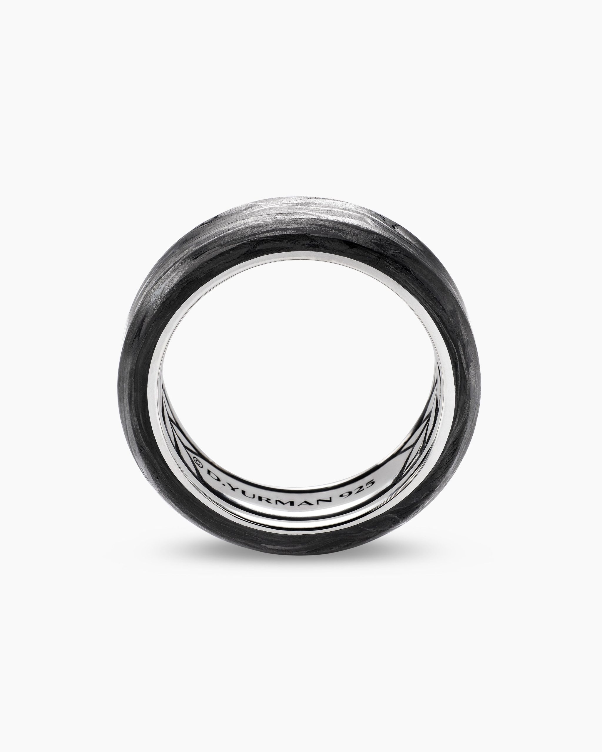 This hand-finished piece is inspired by beveled edges. Sterling silverForged carbonRing, 8.5mmThis item can be engraved. Please contact customer care for more information.