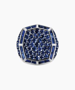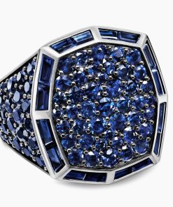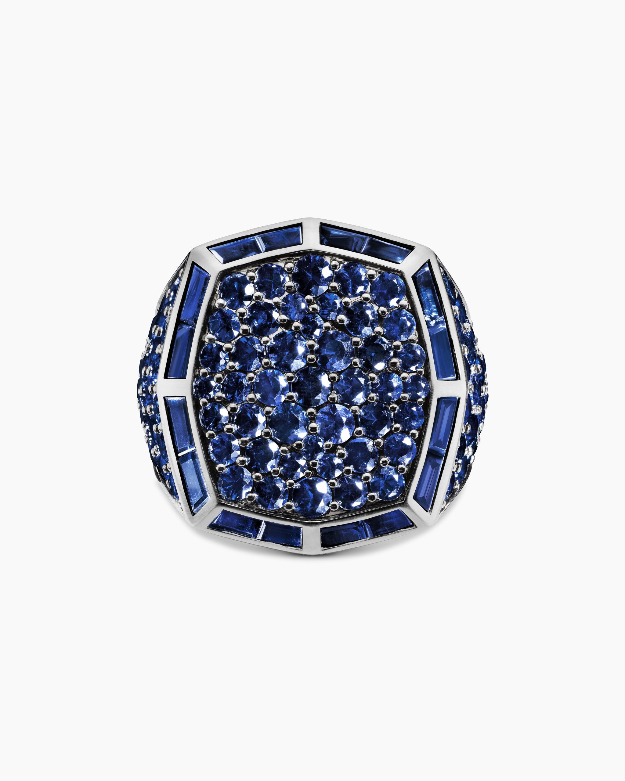 Inspired by clean lines and smooth metal surfaces, these minimalist designs are sculpted with engineered precision. Every pavé diamond or colored gemstone is carefully matched for color and hand set—a tribute to DY artistry. 18-karat white goldPavé sapphires, 6.77 total carat weightRing, 23mmThis item can be resized. Please contact customer care for more information.