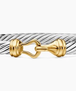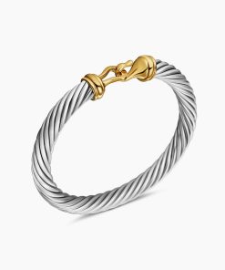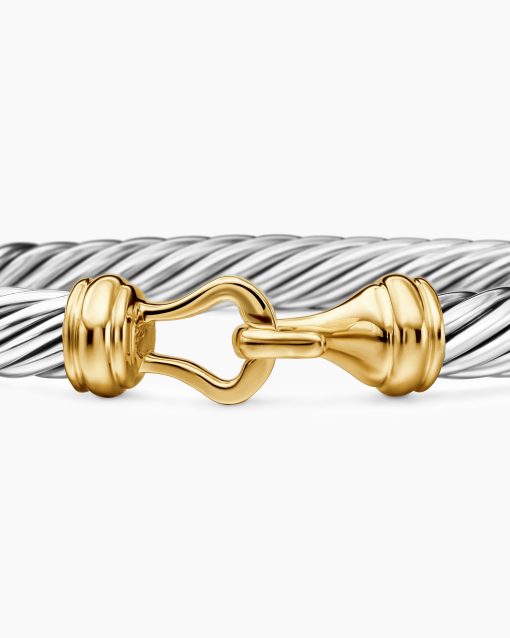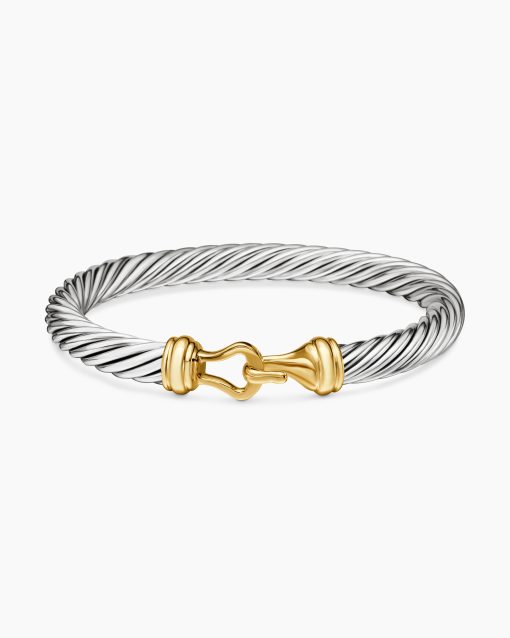 David Yurman’s artistic signature, Cable began as a bracelet that he hand-twisted from 50 feet of wire. For the past 30 years, he has evolved the twisted helix into a myriad of designs. This timeless design is inspired by David’s love of all things equestrian. Sterling silver and 14-karat yellow goldBracelet, 7mmHook clasp