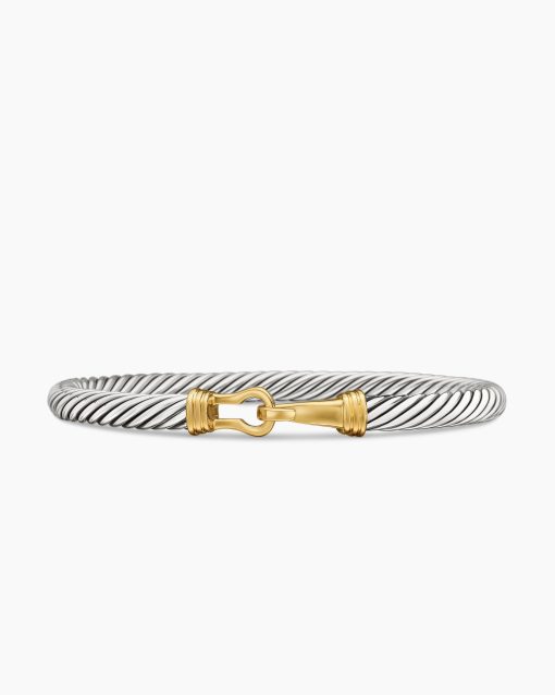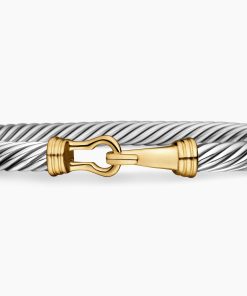David Yurman’s artistic signature, Cable began as a bracelet that he hand-twisted from 50 feet of wire. For the past 30 years, he has evolved the twisted helix into a myriad of designs. This timeless design is inspired by David’s love of all things equestrian. Sterling silver and 14-karat yellow goldBracelet, 5mmHook clasp