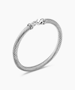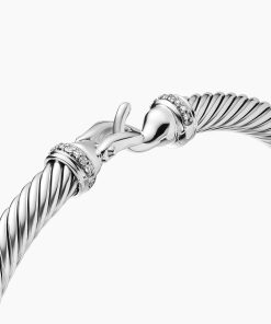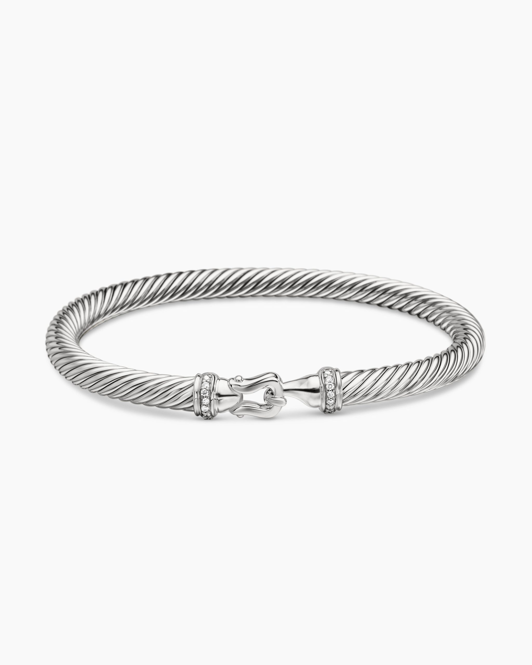 David Yurman’s artistic signature, Cable began as a bracelet that he hand-twisted from 50 feet of wire. For the past 30 years, he has evolved the twisted helix into a myriad of designs. This timeless design is inspired by David’s love of all things equestrian. Sterling silverPavé diamonds, 0.06 total carat weightBracelet, 5mmHook clasp
