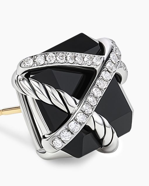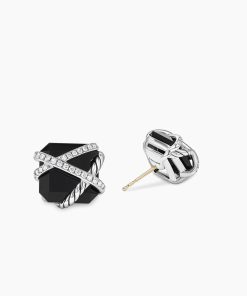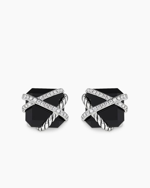 The Cable Wrap Collection redefines how a gemstone is set. Instead of using prongs or a bezel to hold the stone in place, it is elegantly wrapped with strands of Cable and diamonds. Sterling silverBlack onyxPavé-set diamonds, 0.33 total carat weightEarrings, 12mm
