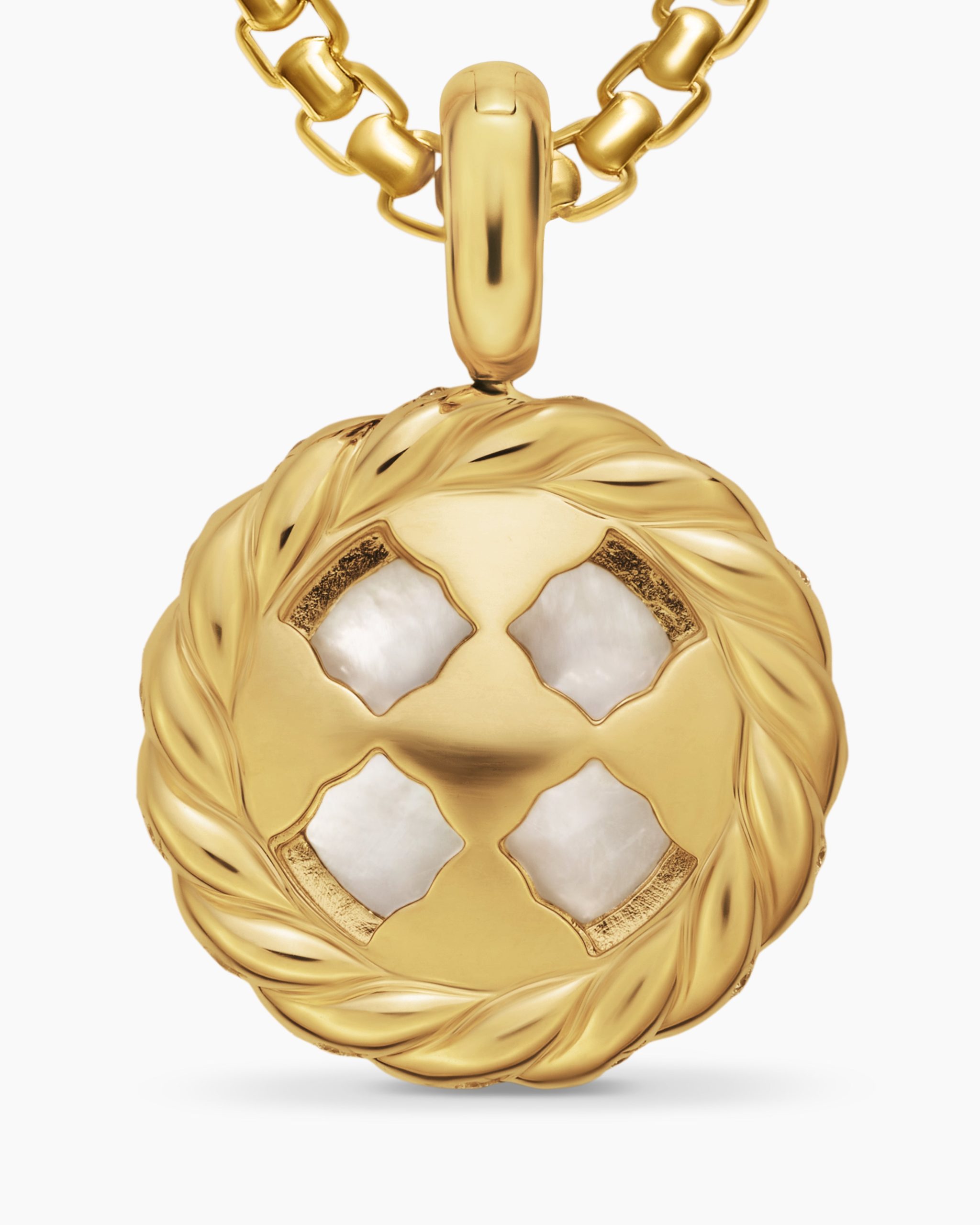 Gifts from nature, the lustrous beauty of pearls has always inspired our timeless designs. 18-karat yellow goldSouth sea white pearl, 13mmPavé-set diamonds, 0.37 total carat weightAmulet, 18.8 x 18.8mmTotal length, 27mmPlease note: amulet only; chain sold separatelyThis item can be engraved. Please contact customer care for more information.