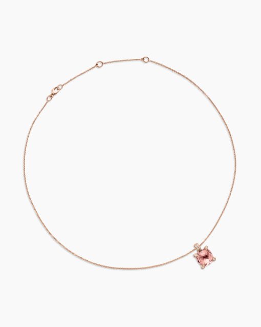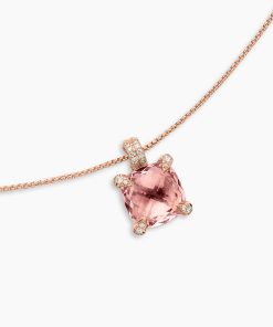 The Châtelaine® Collection is a perfect fusion of David and Sybil Yurman’s combined art—the marriage of a sculptor and a painter—form and color. 18-karat rose goldMorganite, 5.40 total carat weightPavé diamonds, 0.08 total carat weightAdjustable length, 16-18inPendant, 11mmChain, 1.0mmLobster claspFunctioning bail allows pendant to attach to a necklace or bracelet.