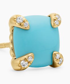 The Châtelaine® Collection is a perfect fusion of David and Sybil Yurman’s combined art—the marriage of a sculptor and a painter—form and color. 18-karat yellow goldTurquoise, 4.00 total carat weightPavé diamonds, 0.06 total carat weightEarrings, 8.5mm