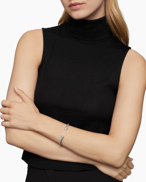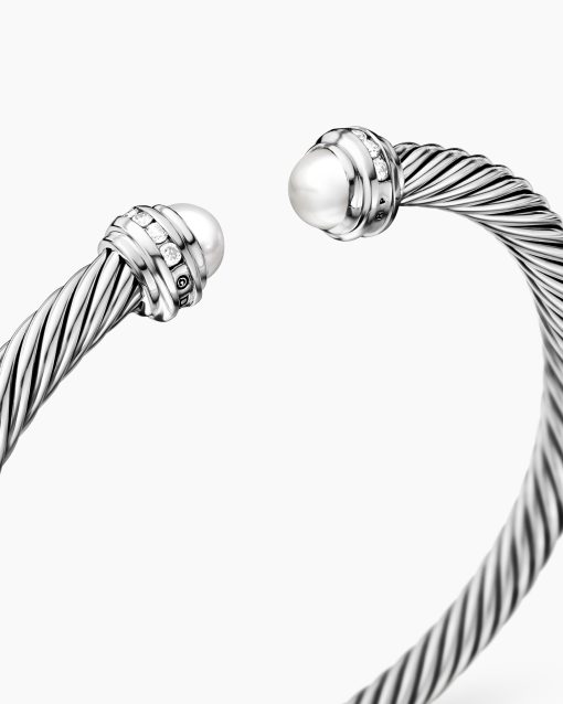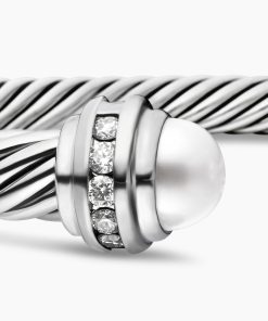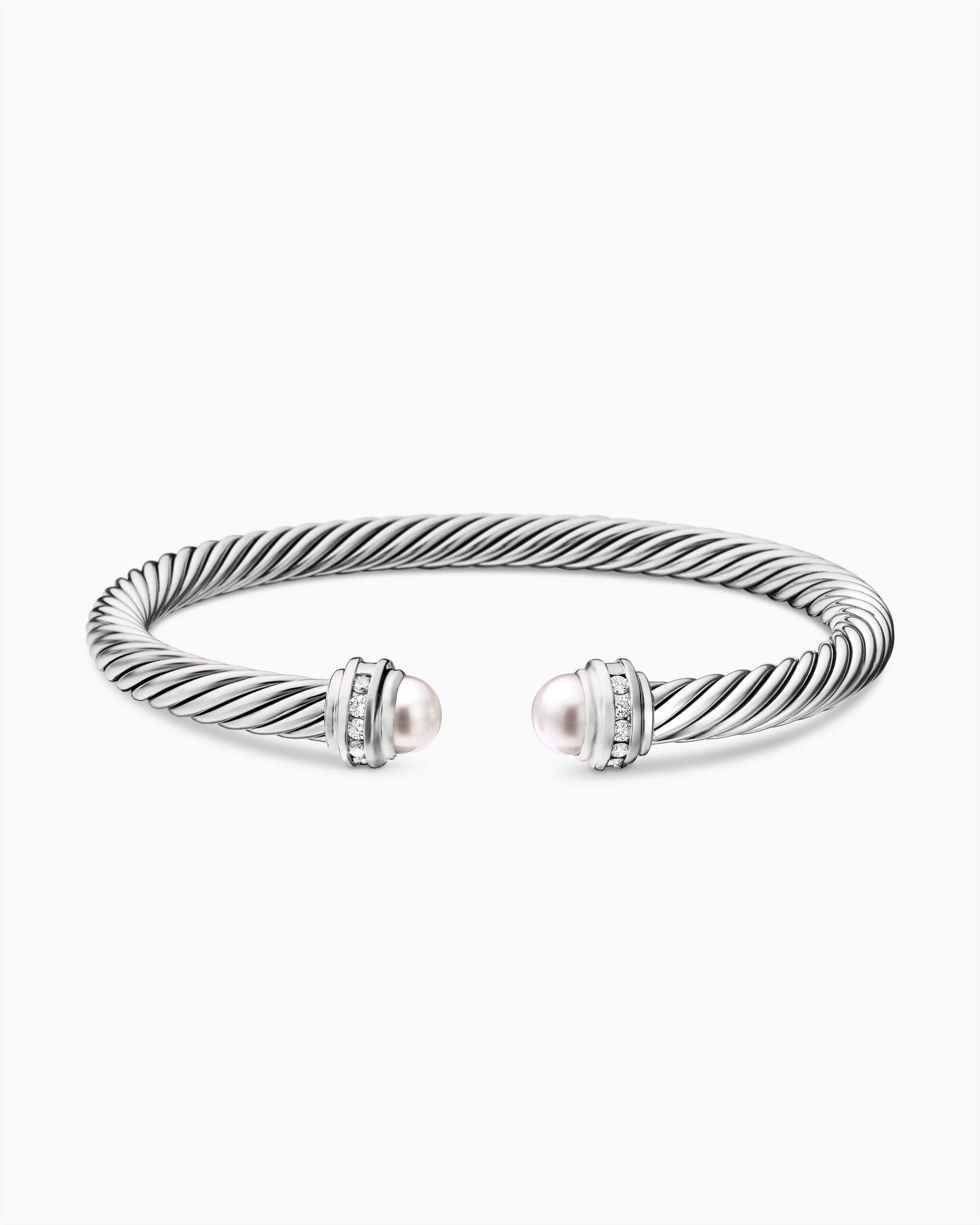 David Yurman’s artistic signature, Cable began as a bracelet that he hand-twisted from 50 feet of wire. For the past 30 years, he has evolved the twisted helix into a myriad of designs. Sterling silverCultured freshwater pearls, 5.75-6.25mmPavé diamonds, 0.18 total carat weightBracelet, 5mm