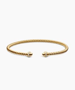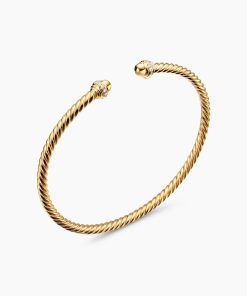 David Yurman’s artistic signature, Cable began as a bracelet that he hand-twisted from 50 feet of wire. For the past 30 years, he has evolved the twisted helix into a myriad of designs. Cablespira® unites artistry and innovation with our exclusive, highly flexible. construction. 18-karat yellow goldPavé diamonds, 0.08 total carat weightBracelet, 3mmCablespira® is a patented DY construction that is highly flexible and exceptionally comfortable to wear.