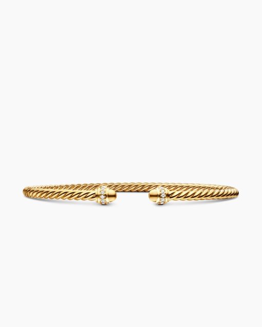 David Yurman’s artistic signature, Cable began as a bracelet that he hand-twisted from 50 feet of wire. For the past 30 years, he has evolved the twisted helix into a myriad of designs. Cablespira® unites artistry and innovation with our exclusive, highly flexible. construction. 18-karat yellow goldPavé diamonds, 0.08 total carat weightBracelet, 3mmCablespira® is a patented DY construction that is highly flexible and exceptionally comfortable to wear.