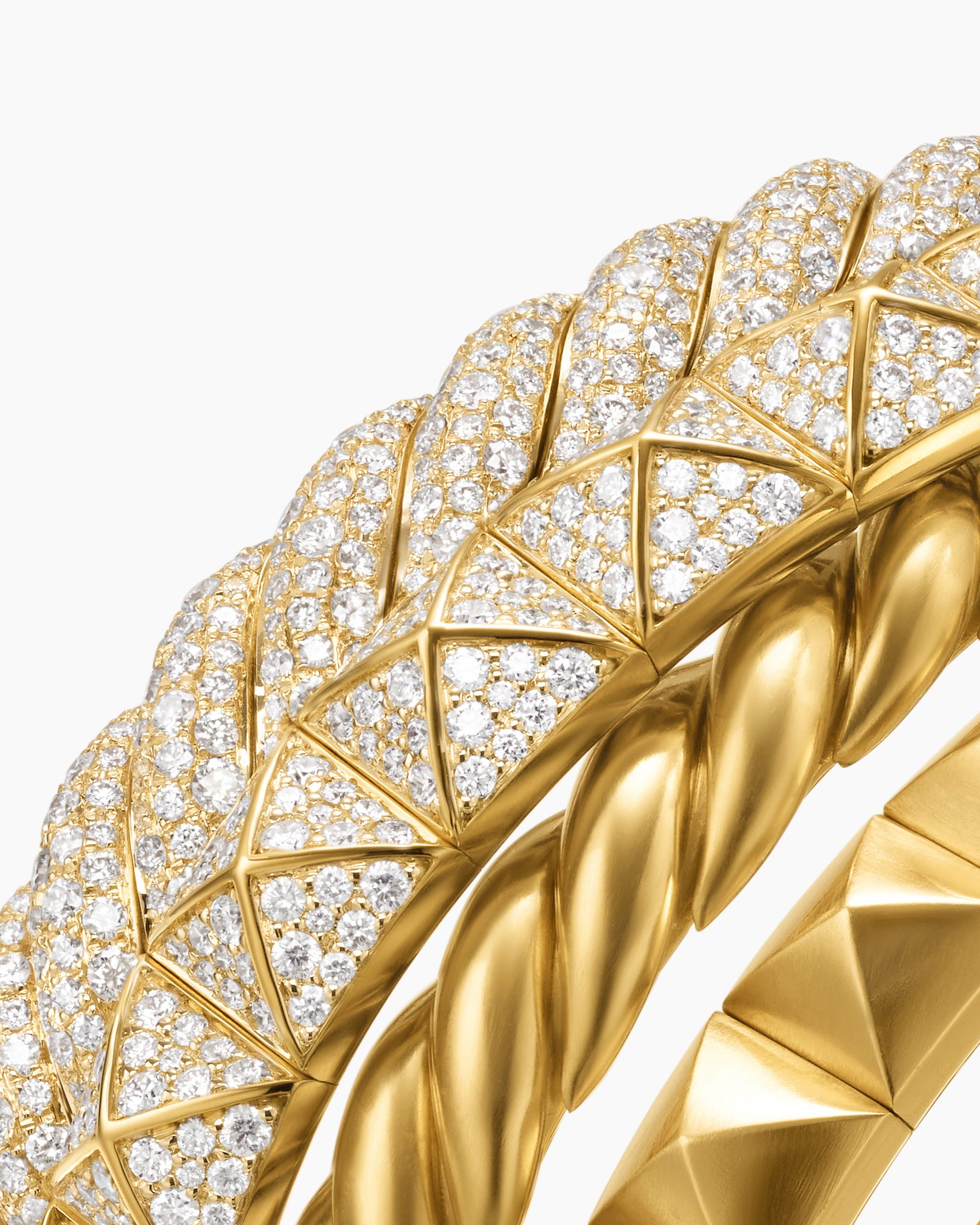Perfect triangles placed within the rhythmic weaving of smooth and Cabled strands intertwine into multifaceted designs as a symbol of unity.18-karat yellow goldPavé-set diamonds, 6.51 total carat weightBracelet, 33mm