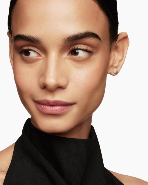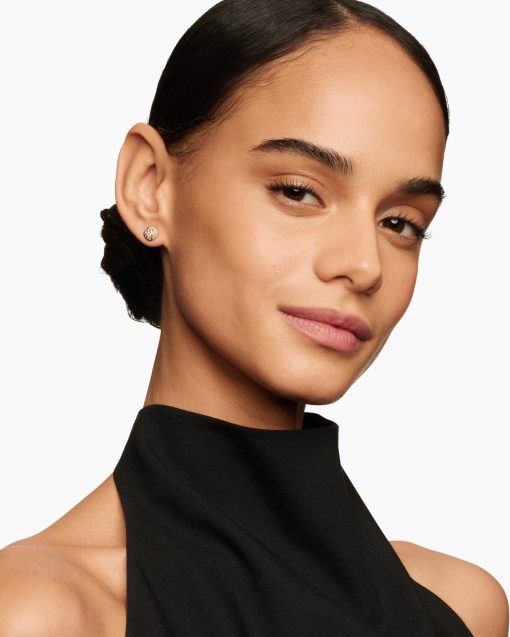This collection combines delicate designs with dramatic pavé-set gemstones capturing the excitement and energy of New York City at night. 18-karat rose goldPavé cognac diamonds, 0.85 total carat weightEarrings, 8mm