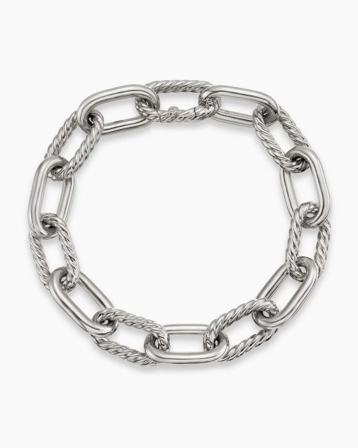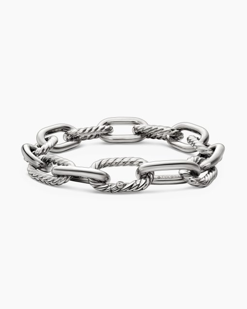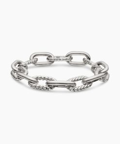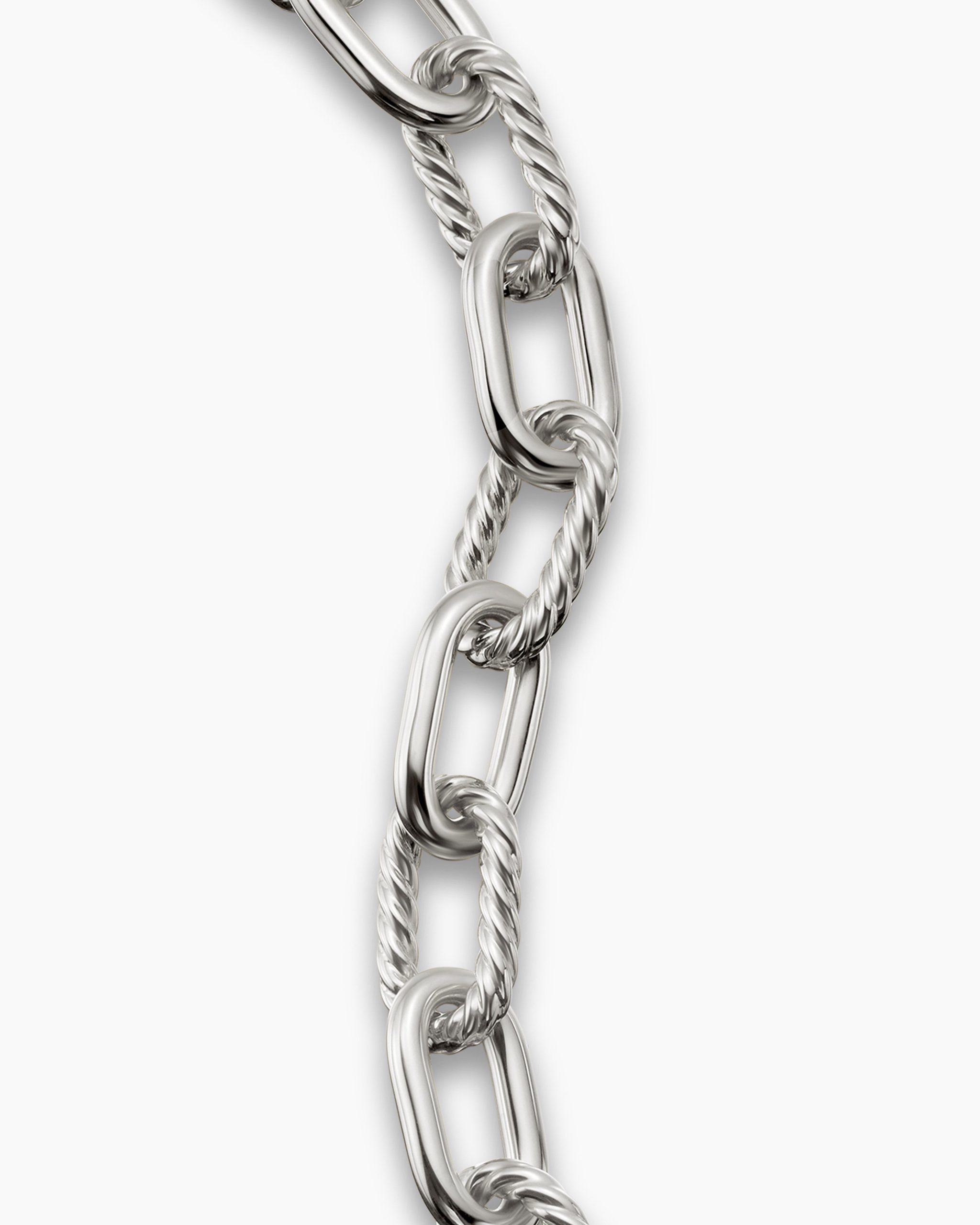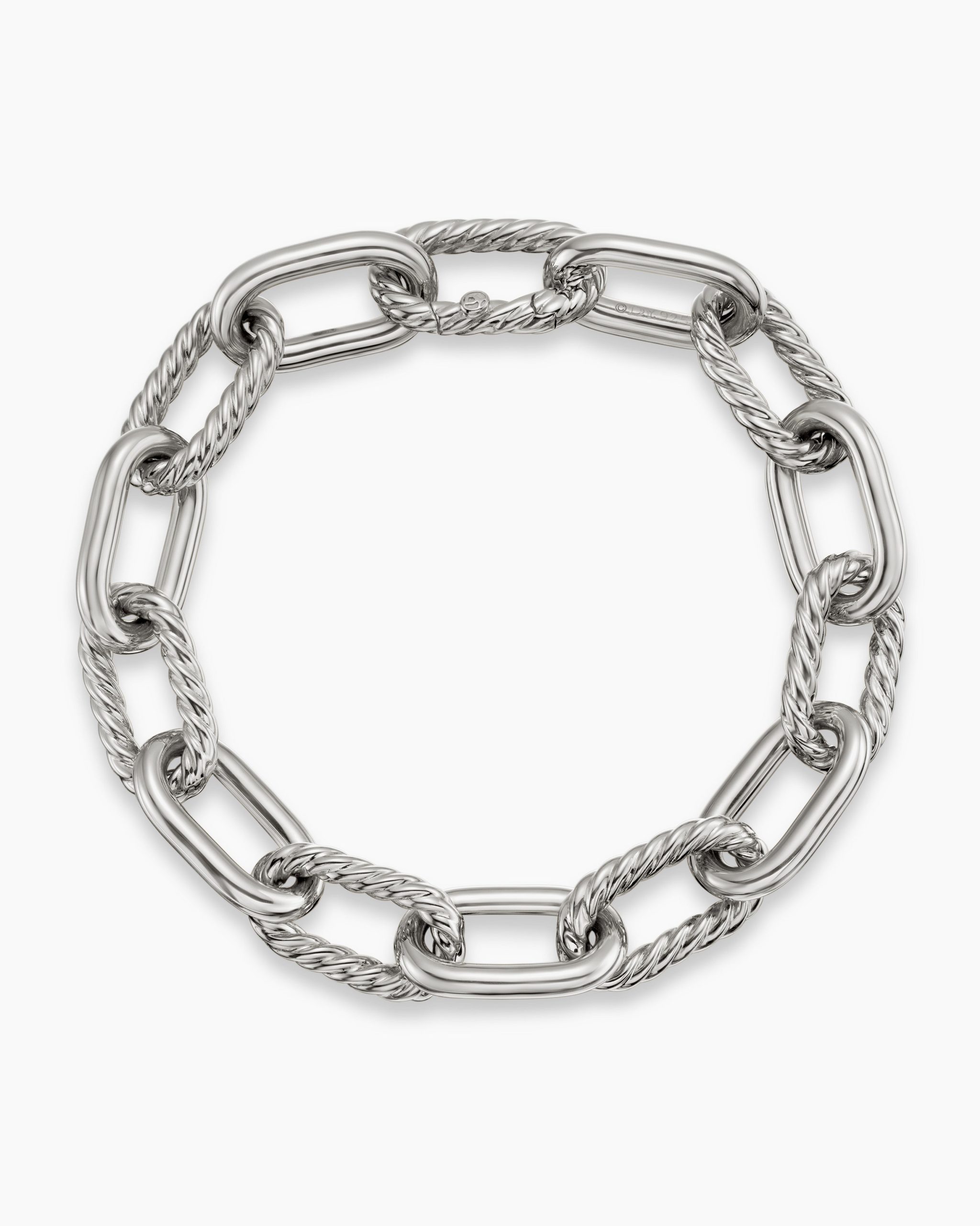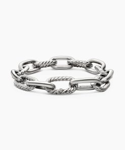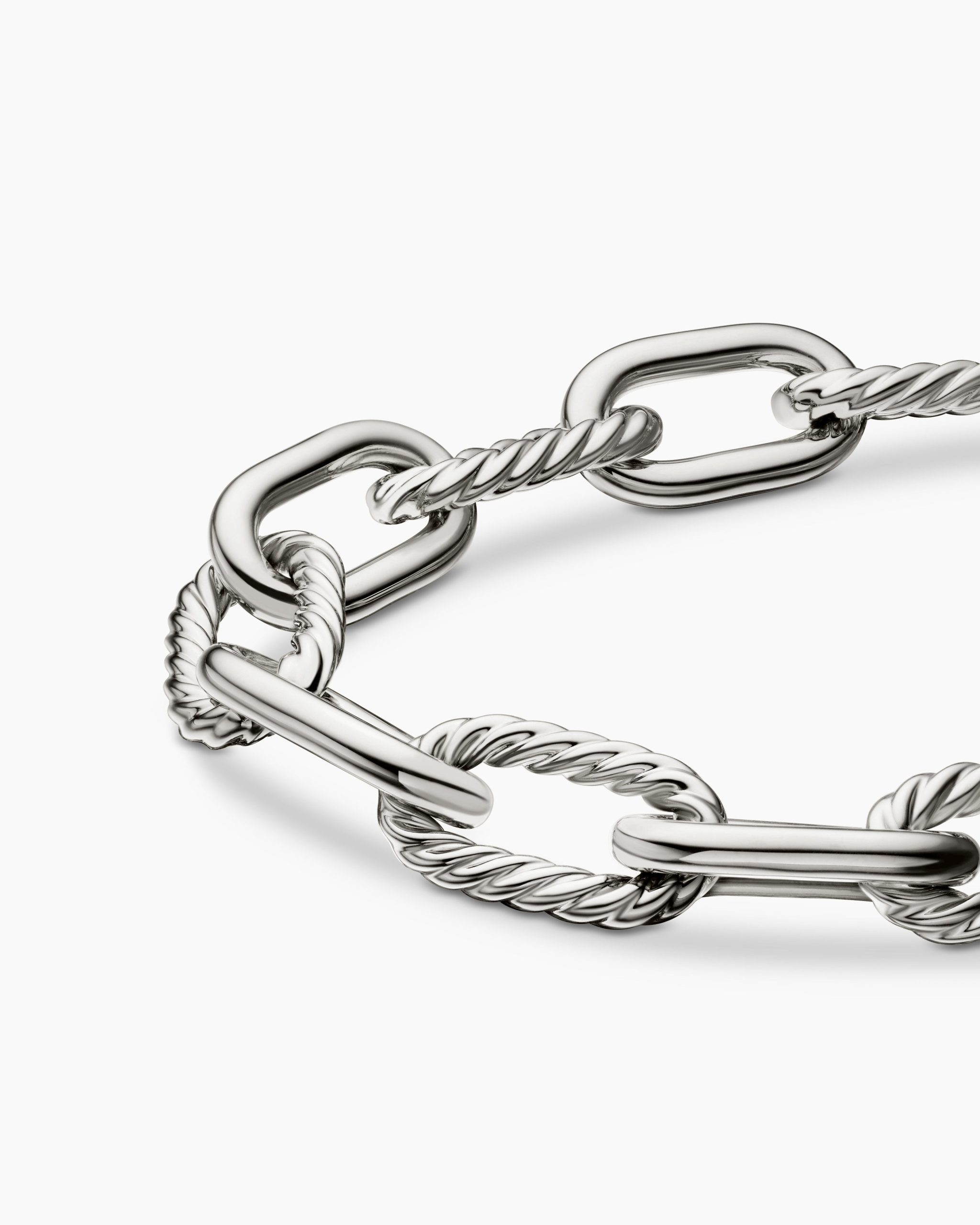 Named for the iconic Manhattan avenue, DY Madison® captures the bold spirit of New York City—unexpected moments and the promise of success. A striking juxtaposition of smooth and Cabled, pillow-shaped links fuses the brand’s signature design elements to create a unique rhythm. At once modern and timeless, these must-have chains are instant heirlooms.Sterling silverBracelet, 11mmPush clasp