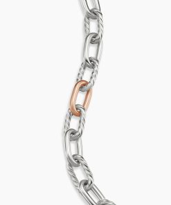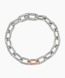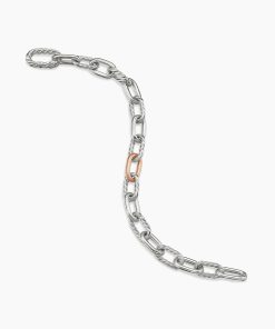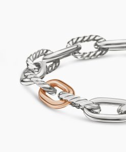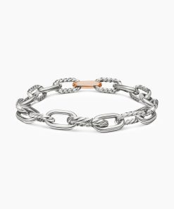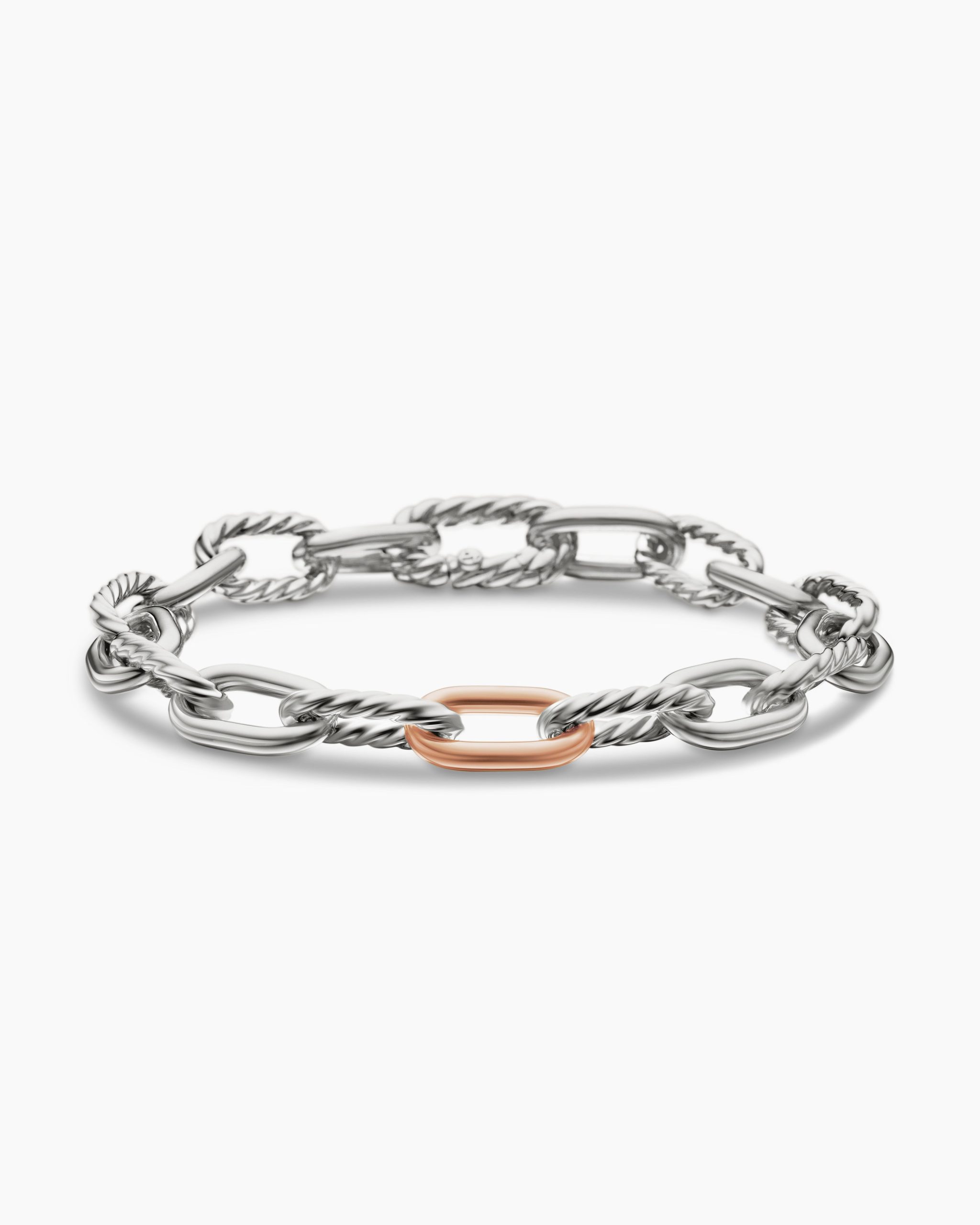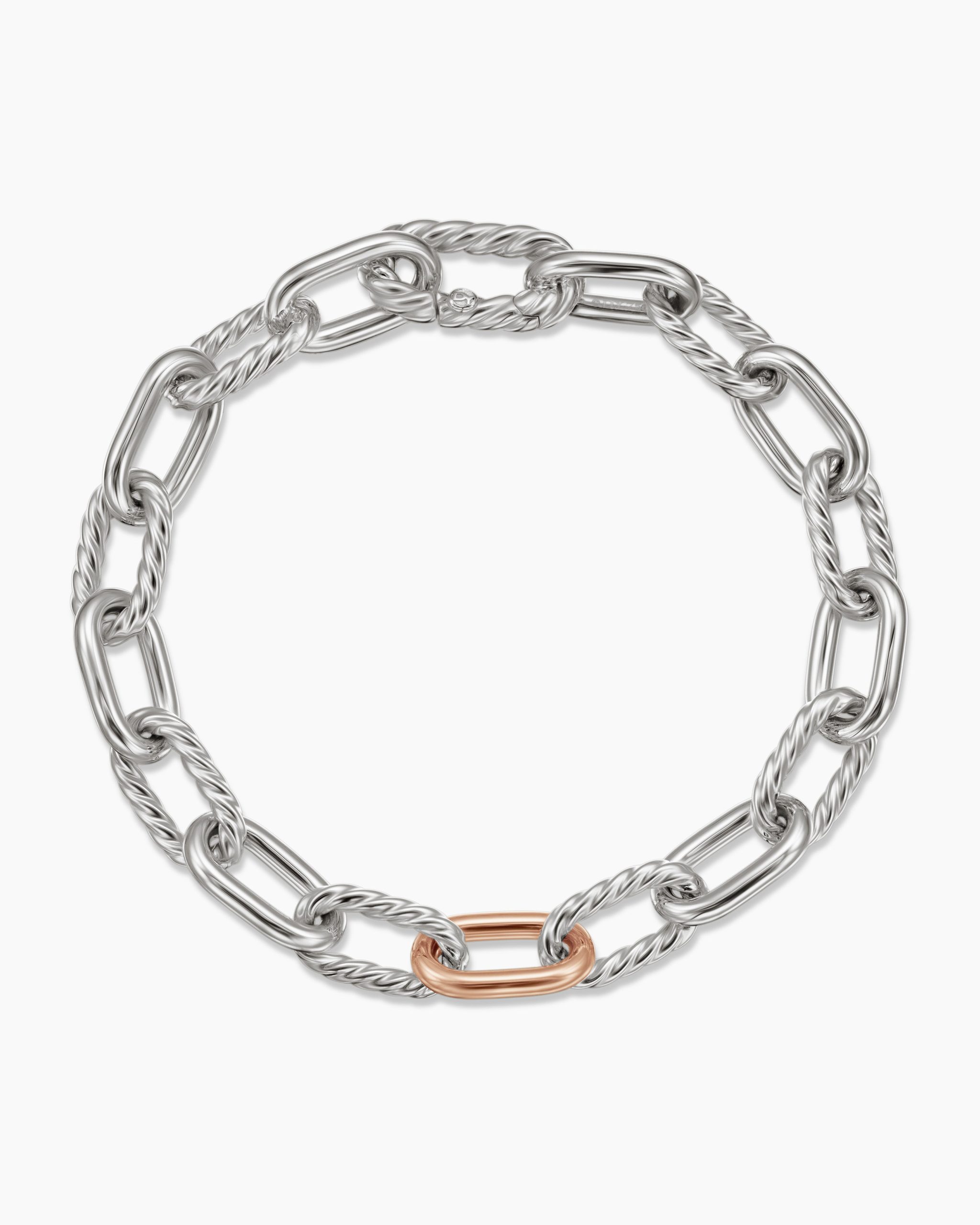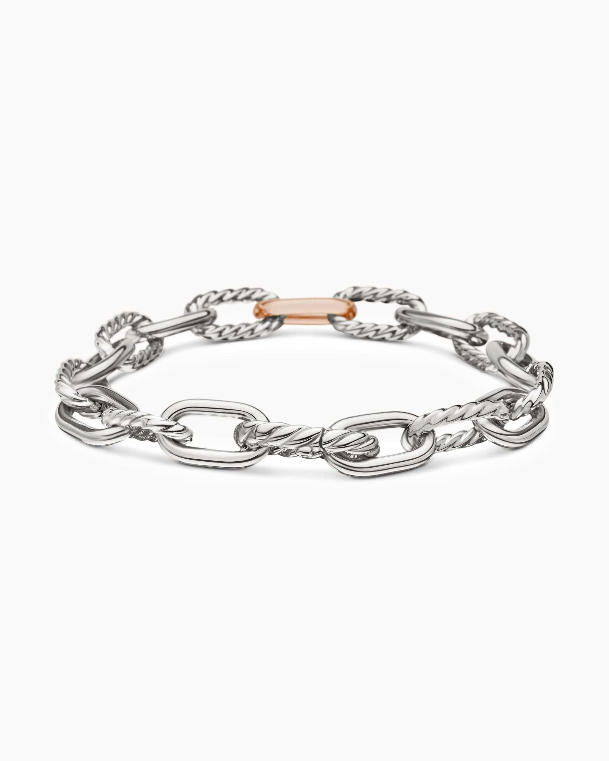 Named for the iconic Manhattan avenue, DY Madison® captures the bold spirit of New York City—unexpected moments and the promise of success. A striking juxtaposition of smooth and Cabled, pillow-shaped links fuses the brand’s signature design elements to create a unique rhythm. At once modern and timeless, these must-have chains are instant heirlooms.Sterling silver with bonded 18-karat bonded rose goldBracelet, 8.5mmPush clasp