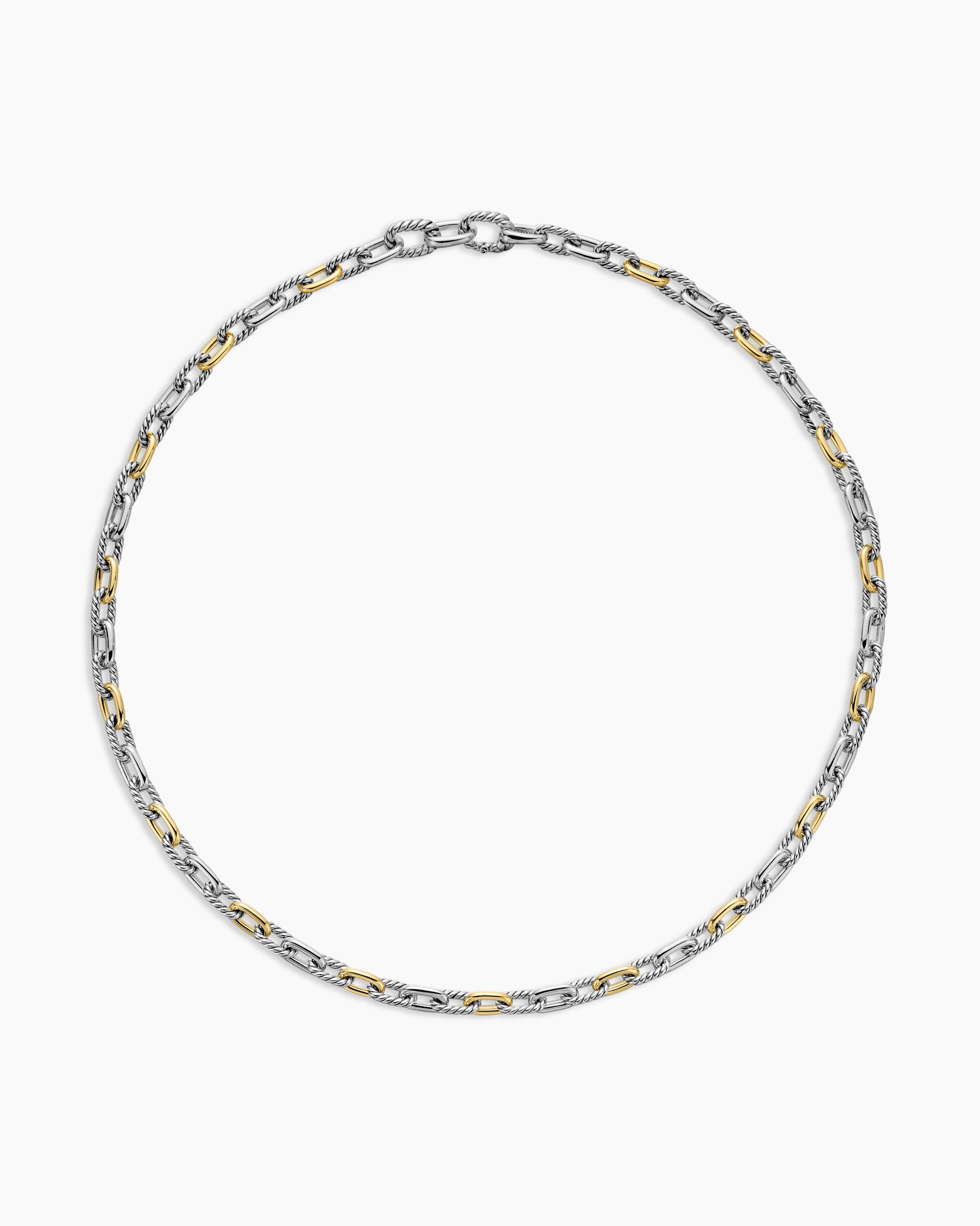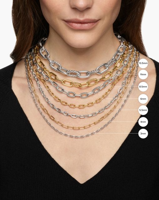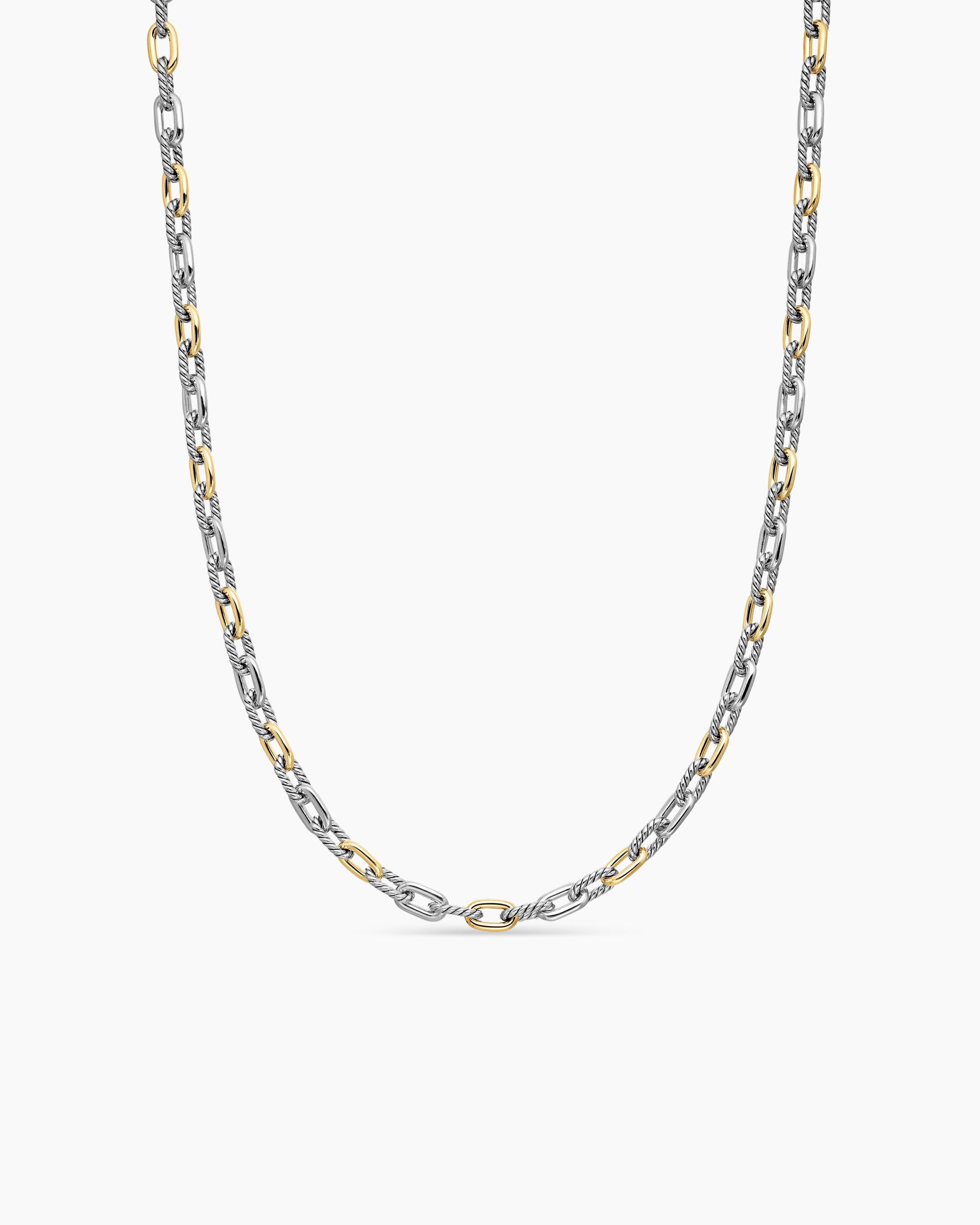 Named for the iconic Manhattan avenue, DY Madison® captures the bold spirit of New York City—unexpected moments and the promise of success. A striking juxtaposition of smooth and Cabled, pillow-shaped links fuses the brand’s signature design elements to create a unique rhythm. At once modern and timeless, these must-have chains are instant heirlooms.Sterling silver with 18-karat bonded yellow goldNecklace, 5.5mmPush clasp