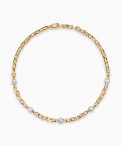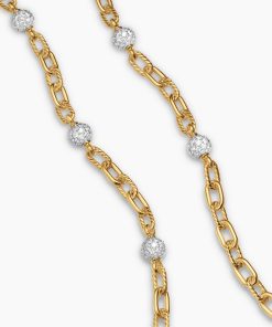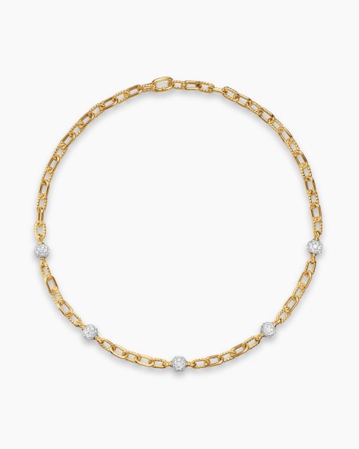 Named for the iconic Manhattan avenue, DY Madison® captures the bold spirit of New York City—unexpected moments and the promise of success. A striking juxtaposition of smooth and Cabled, pillow-shaped links fuses the brand’s signature design elements to create a unique rhythm. At once modern and timeless, these must-have chains are instant heirlooms.18-karat yellow goldPavé-set diamonds, 4.63 total carat weightNecklace, 6mmPush clasp