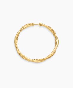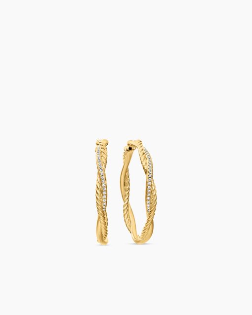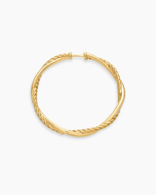 The Infinity Collection is a fresh take on the ancient symbol with a pair of elliptical smooth and Cabled links interlaced in perfect harmony. 18-karat yellow goldPavé diamonds, 0.25 total carat weightEarrings, 42 x 4mm