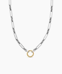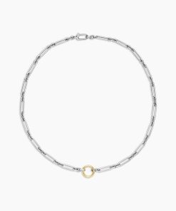 This Lexington design is inspired by the sleek sensibility of ‘30s Manhattan architecture, with clean lines and the juxtaposition of smooth and Cabled metal. Sterling silver with 18-karat yellow goldChain, 4.5mmPush claspThis item can be engraved. Please contact customer care for more information.