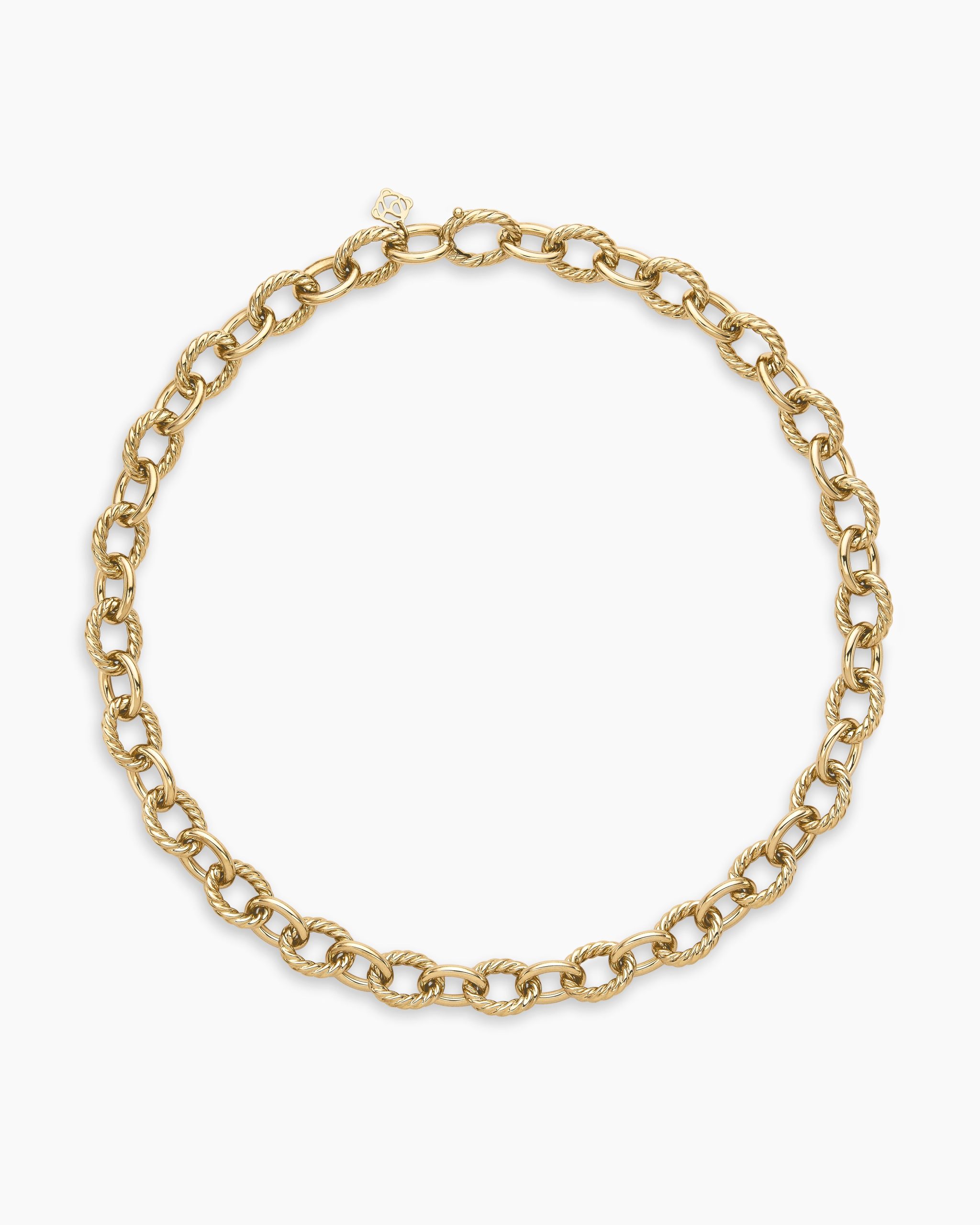 David Yurman chains are inspired by classical and original motifs, and meticulously crafted by artisans. They are designed to be worn alone, layered, or complemented with unique enhancers or charms from our other collections. 18-karat yellow goldChain, 16mmLobster clasp