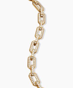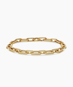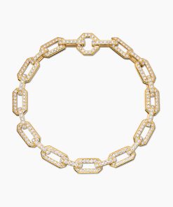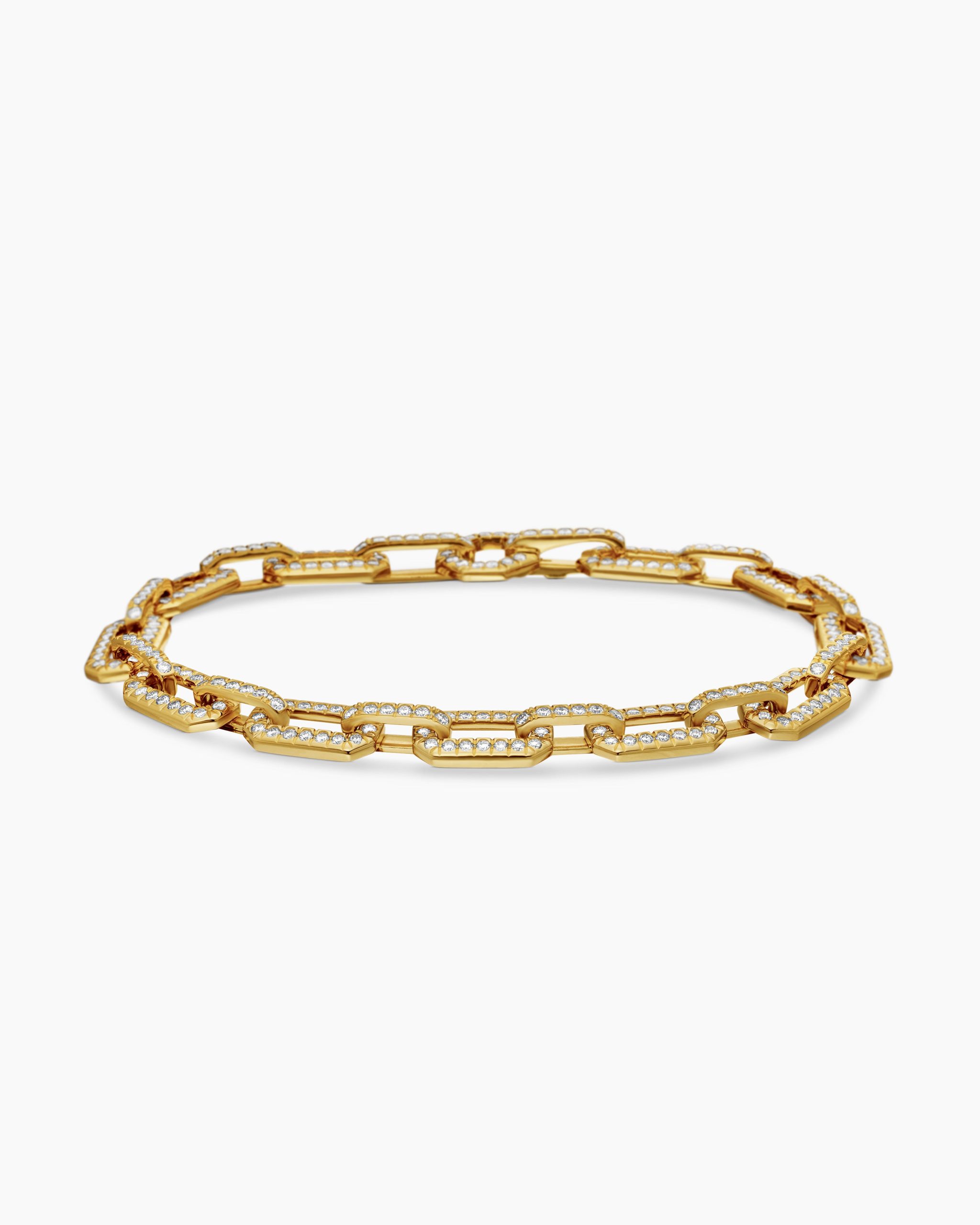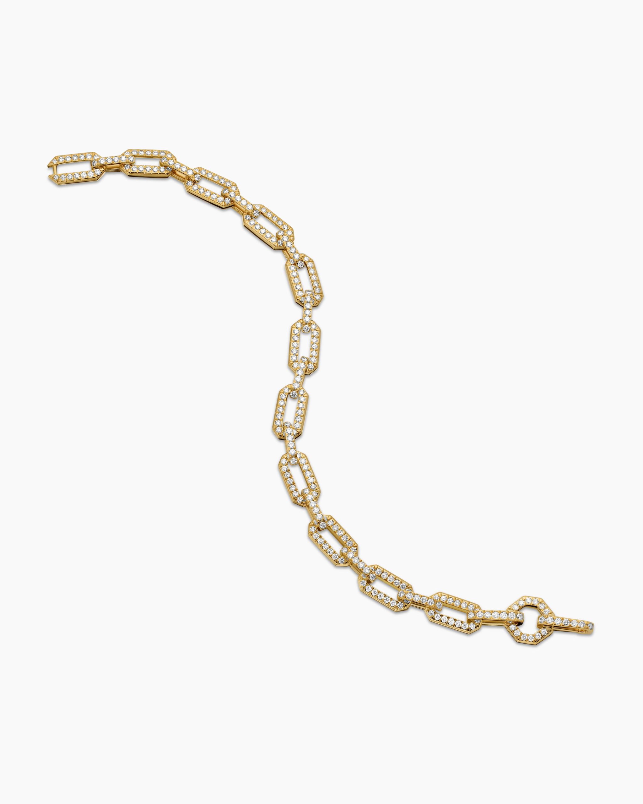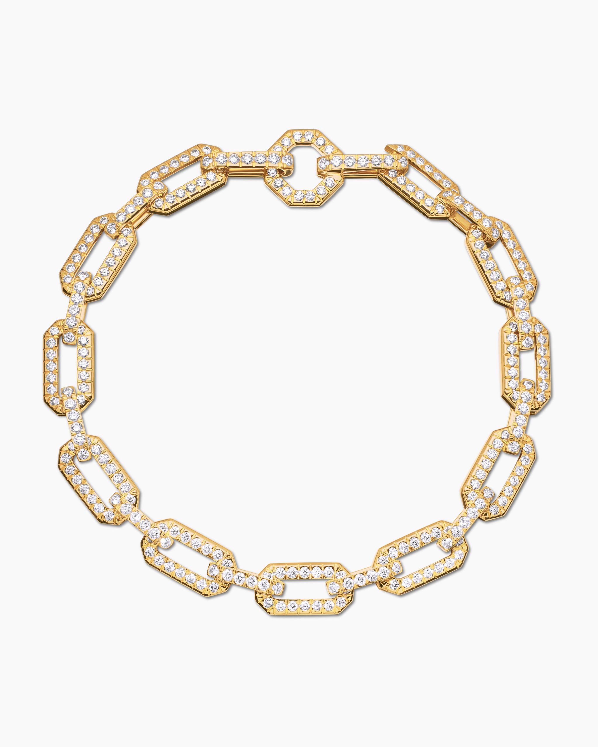 Inspired by classical and original motifs, David Yurman chain necklaces and bracelets showcase masterful craftsmanship, with sculptural links carved and assembled for seamless movement. Ideal for layering, these timeless chains are the foundation of a jewelry collection, whether worn alone or paired with a pendant.18-karat yellow goldPavé-set diamonds, total carat weight ranges from 3.03 to 3.28 (dependent on size)Bracelet, 7mmPush clasp