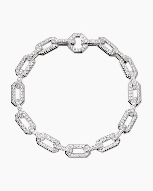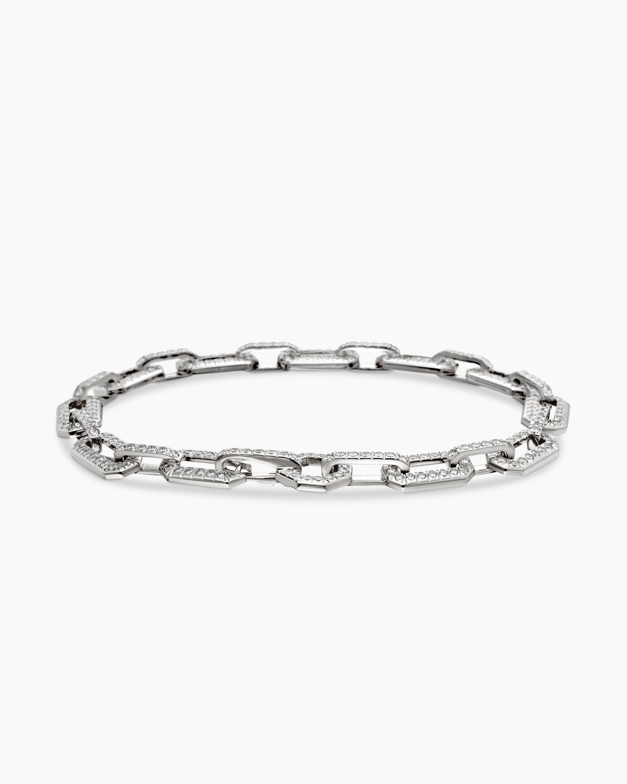 Inspired by classical and original motifs, David Yurman chain necklaces and bracelets showcase masterful craftsmanship, with sculptural links carved and assembled for seamless movement. Ideal for layering, these timeless chains are the foundation of a jewelry collection, whether worn alone or paired with a pendant.18-karat white goldPavé-set diamonds, total carat weight ranges from 3.03 to 3.28 (dependent on size)Bracelet, 7mmPush clasp