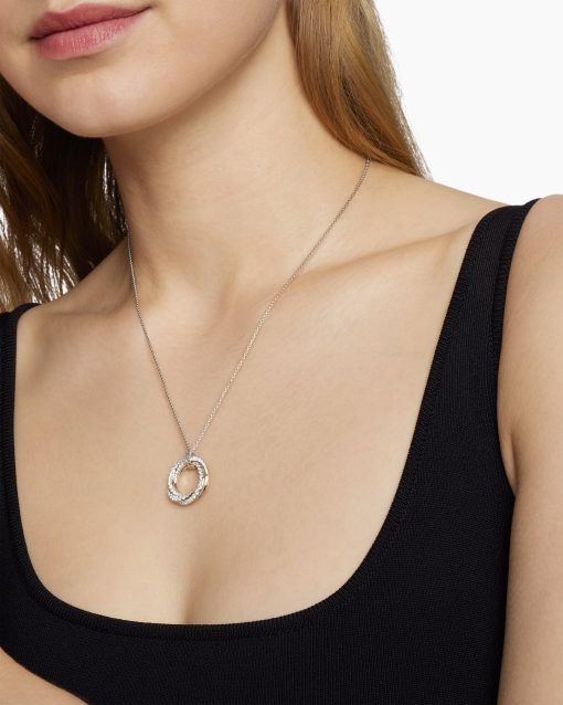 The Crossover Collection® explores the rhythmic weaving of line to create form and movement. Using a dynamic range of smooth and cabled cords, the individual strands are meticulously entwined. 18-karat white goldPavé diamonds, 0.78 total carat weightAdjustable length, 16-18inPendant, 21mmChain, 1.25mmLobster clasp