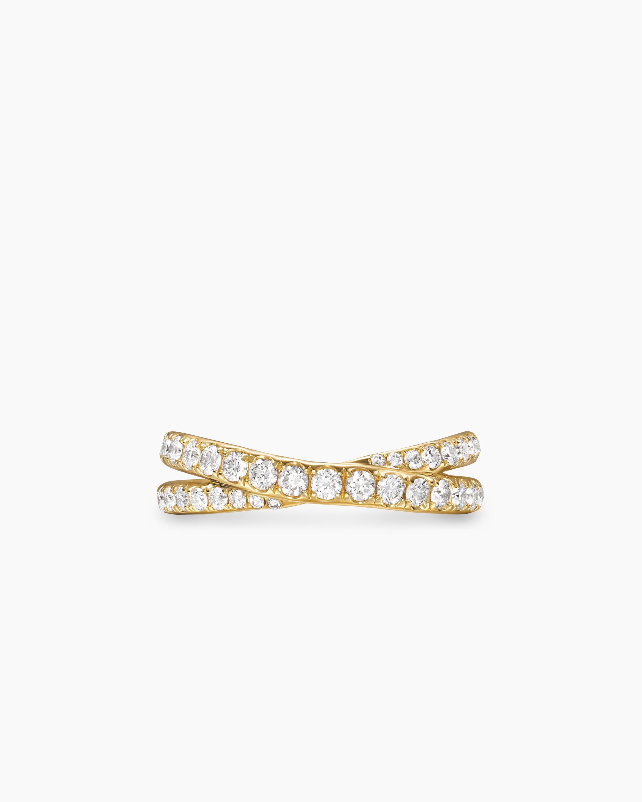 The DY Crossover® Collection explores the rhythmic weaving of line to create form and movement. Using a dynamic range of smooth and cabled cords, the individual strands are meticulously entwined.18-karat yellow goldPavé-set diamonds, 0.66 total carat weightRing, 6mmThis item can be resized. Please contact customer care for more information.